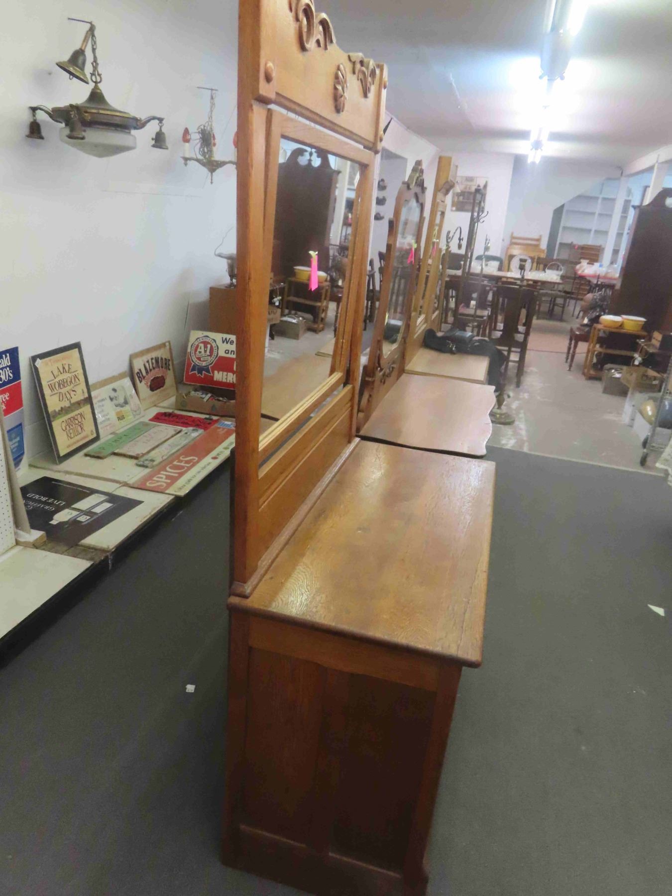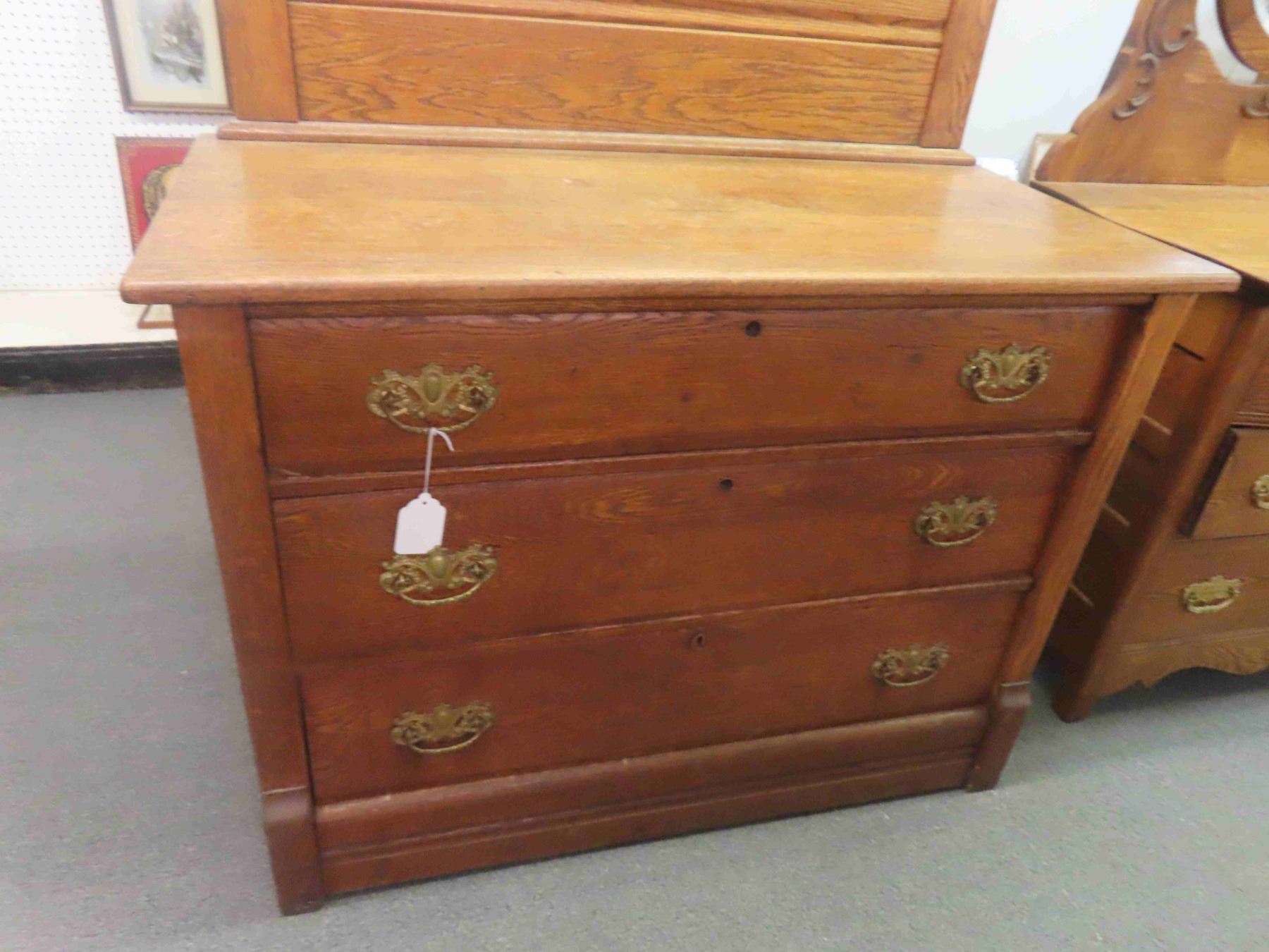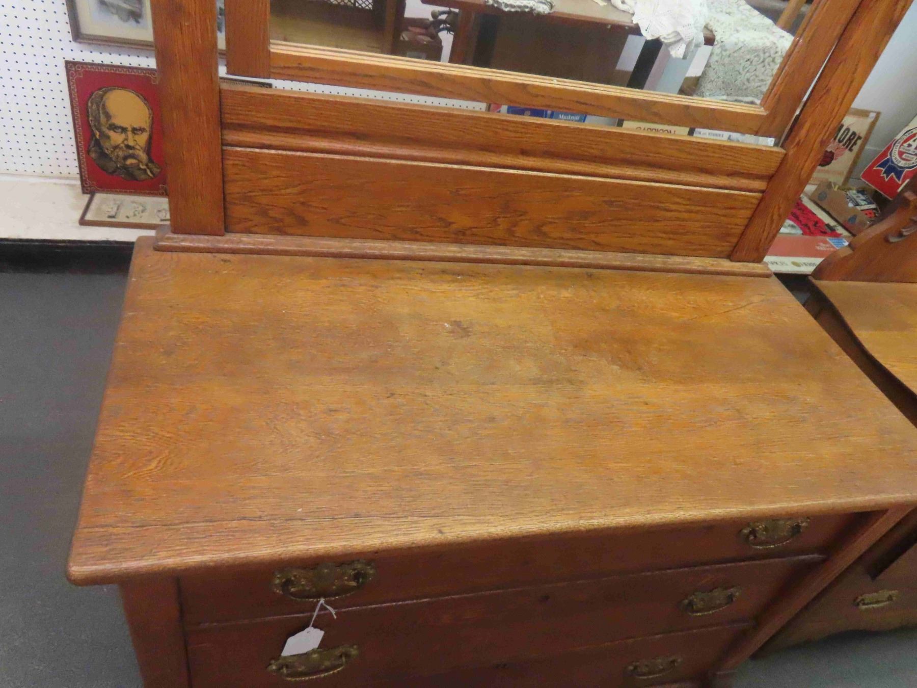 3 Drawer Wooden Dresser with Mirror 20" x 42" x 76" -Believed to be Oak