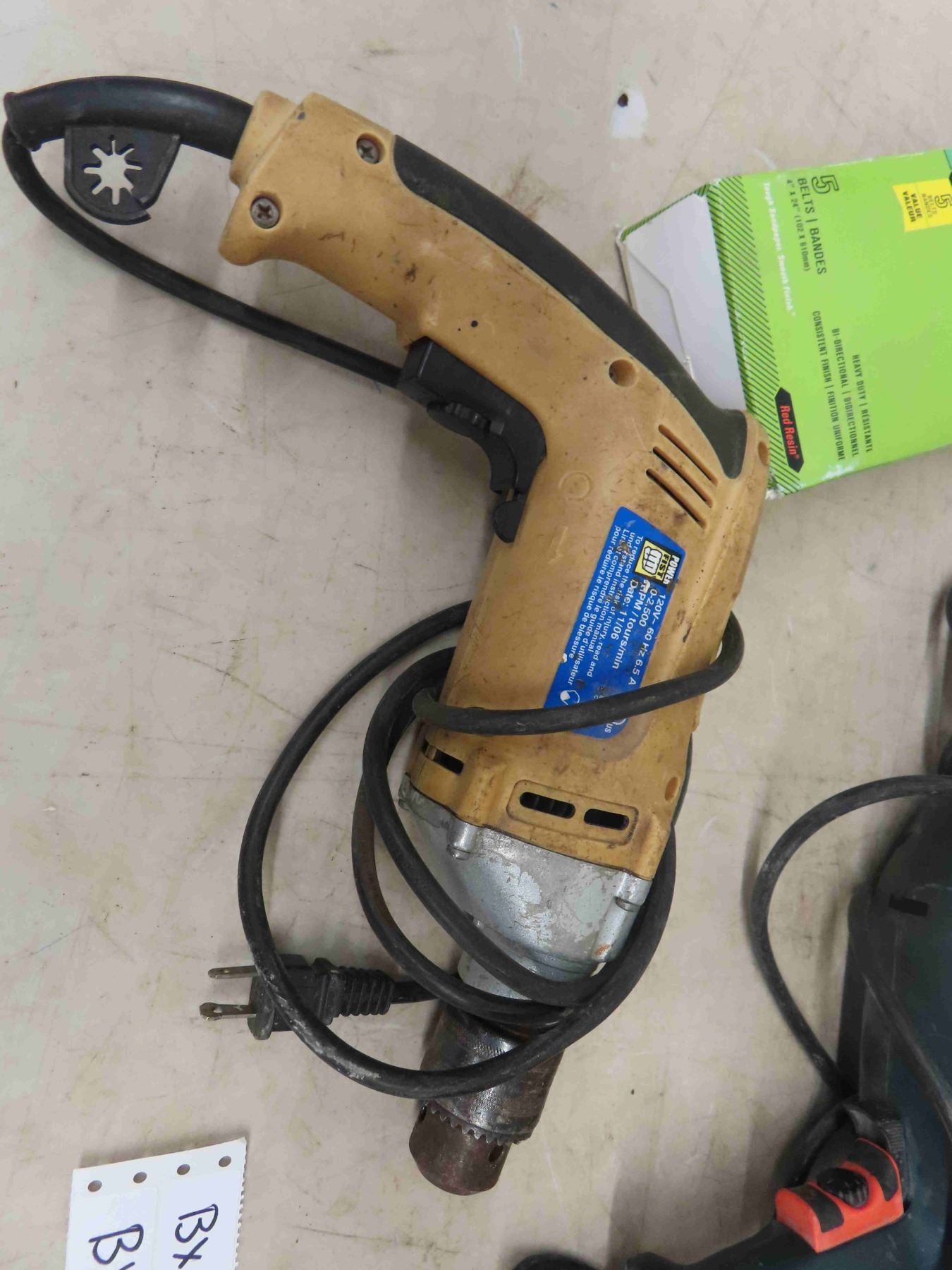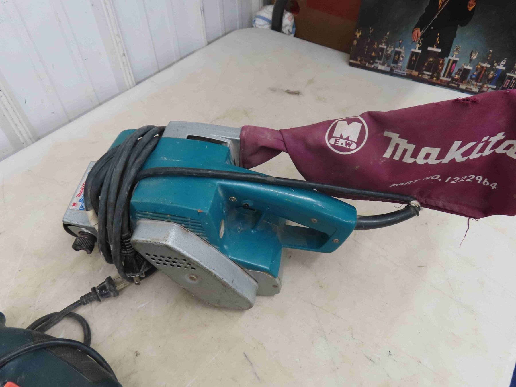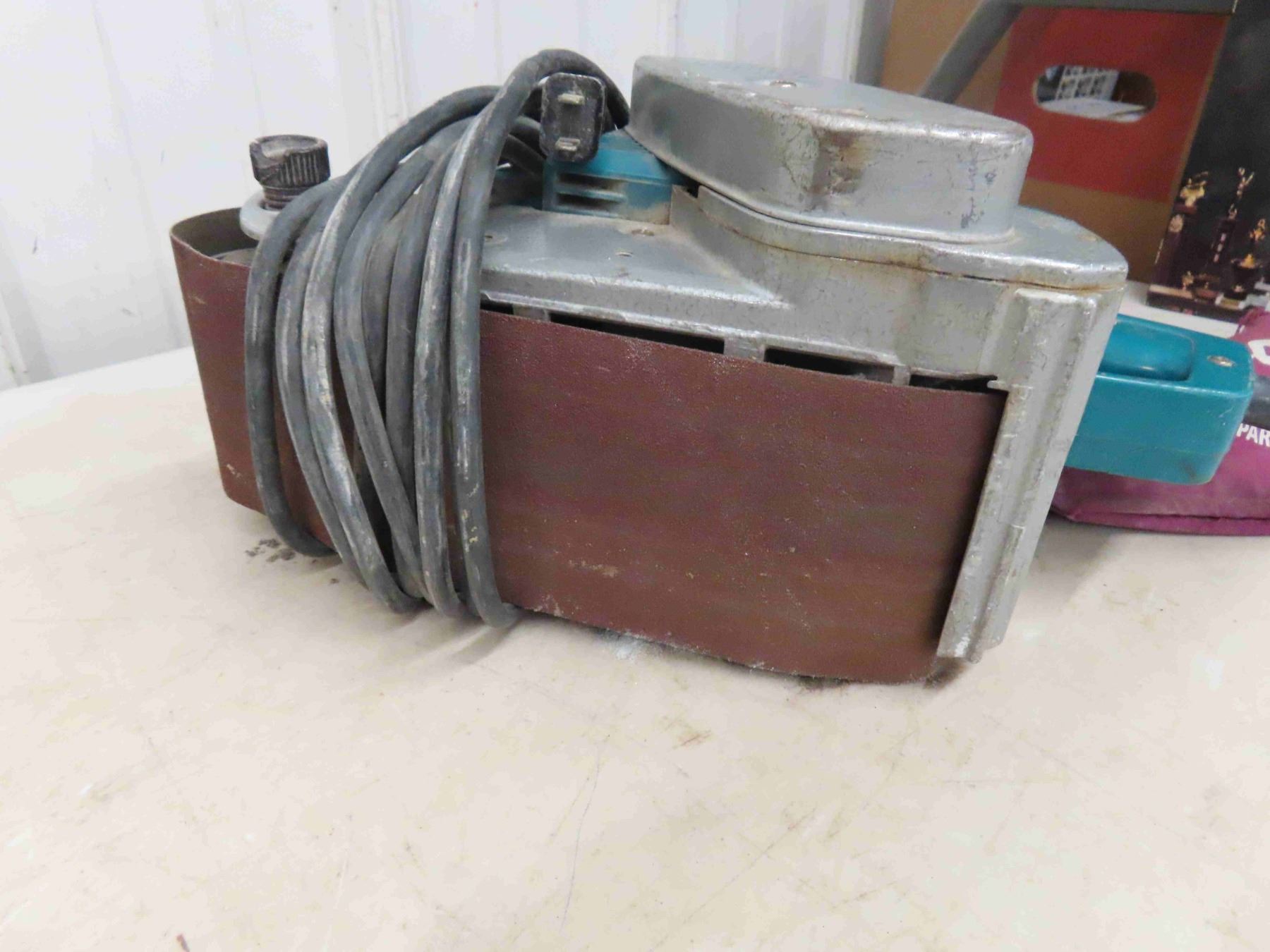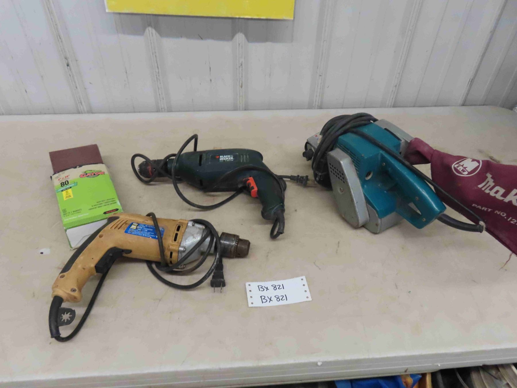 3 Electric Power Tools ; Makita Belt Sander, Black + Decker + Powerfist Drills