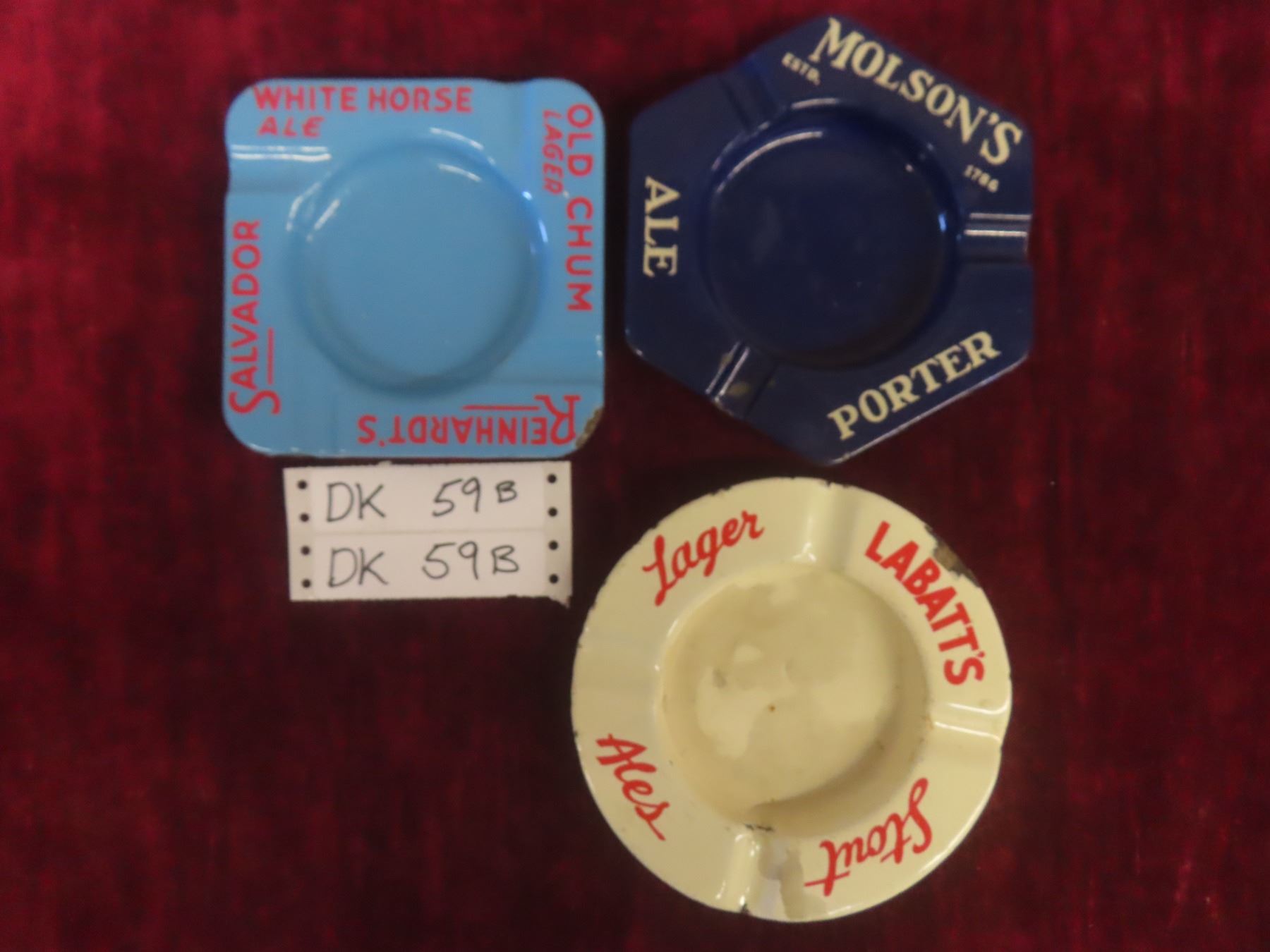 3 Enamel Brewery Ashtrays: White Horse, Molson & Labatts