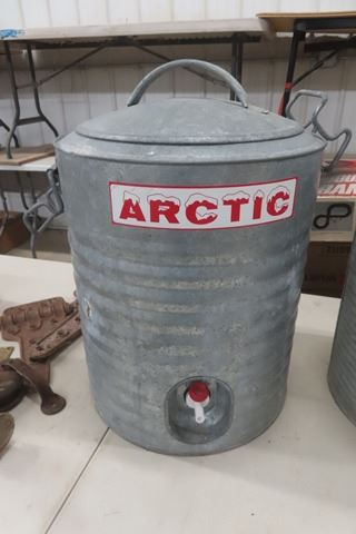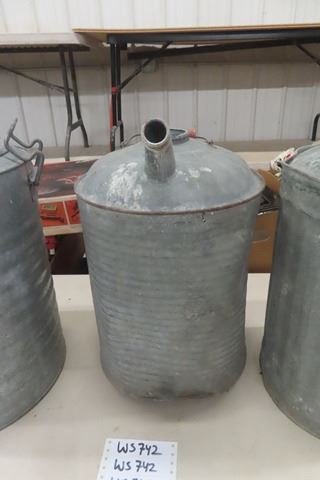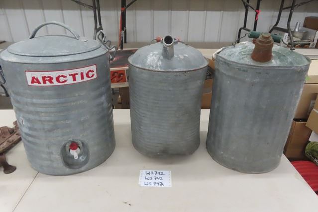 3 Galvanized Water Jugs - 2 With Top Spouts, 1 Has Lower Spigot