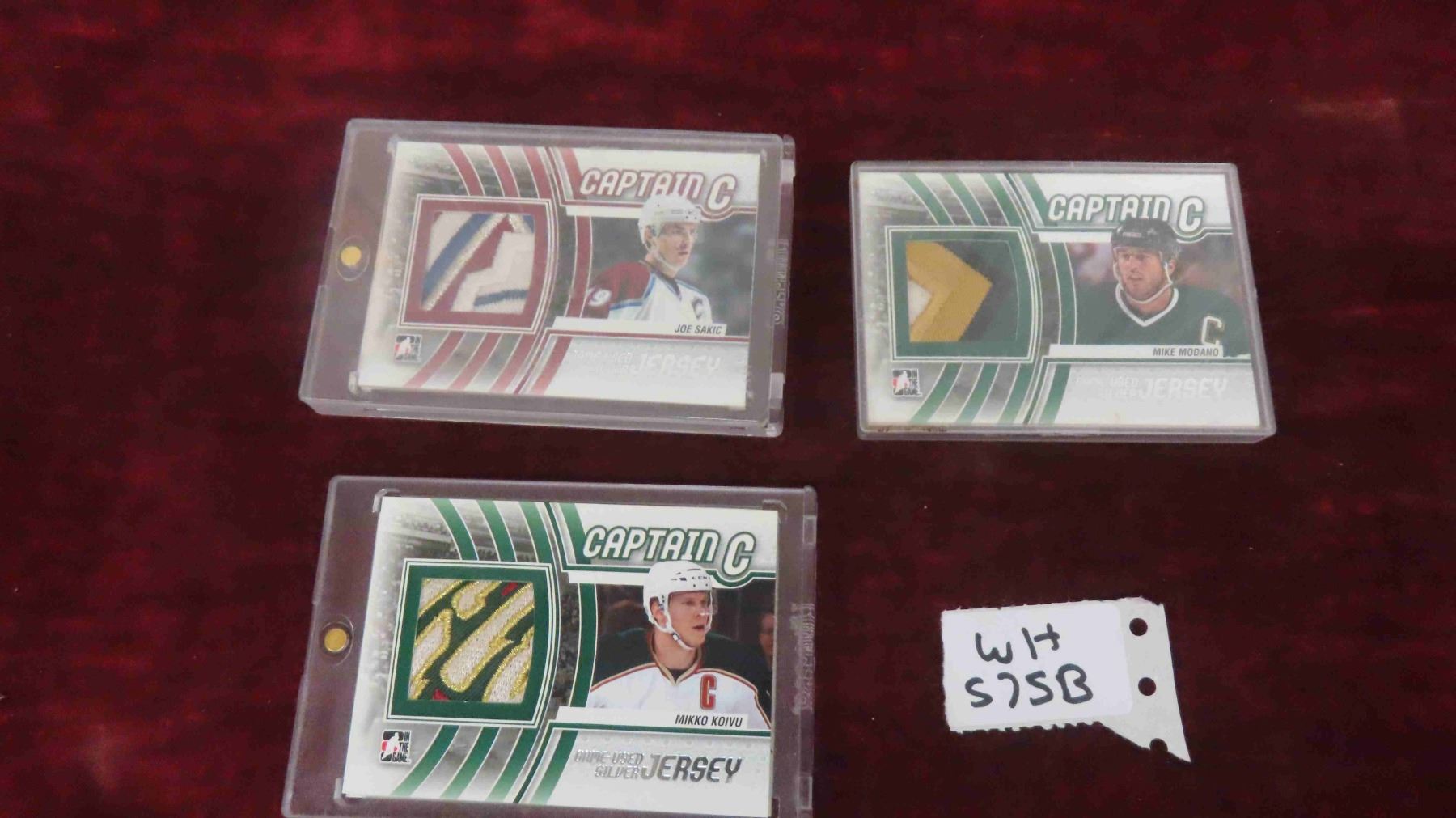 3 Game Used Silver Jersey Cards Including Sakic, Modano, Koivu