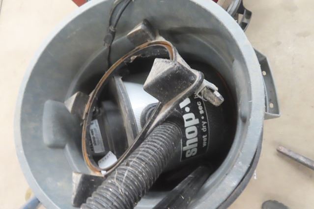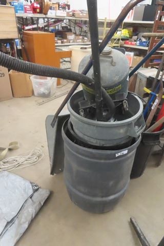 3 Garbage Cans, Shop Vacuum, Garden Hose, Snow Scoop