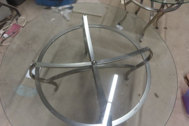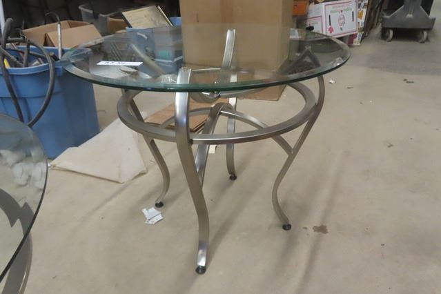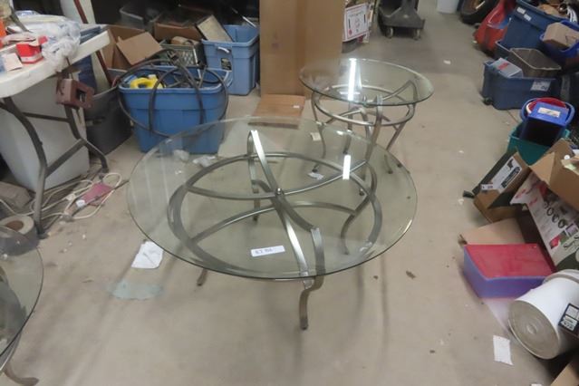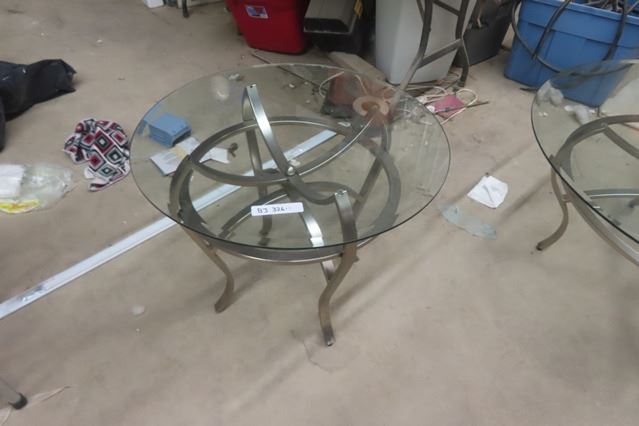3 Glass Round Tables with Metal Base Patio Tables; 1) 38" Wide, 2) 26" Wide
