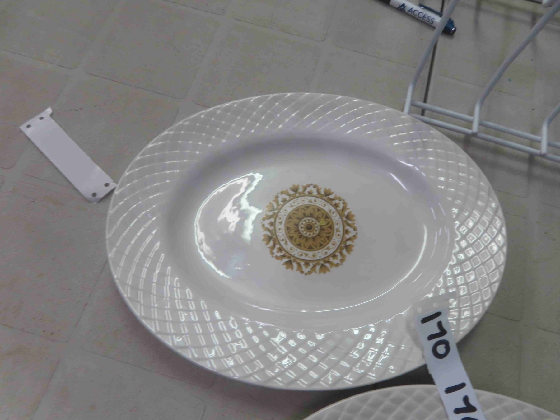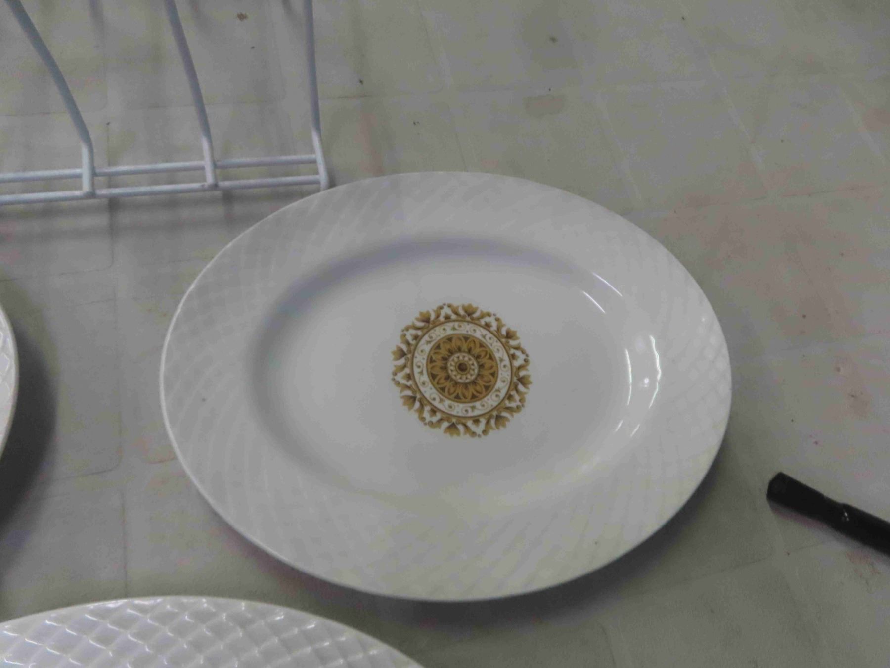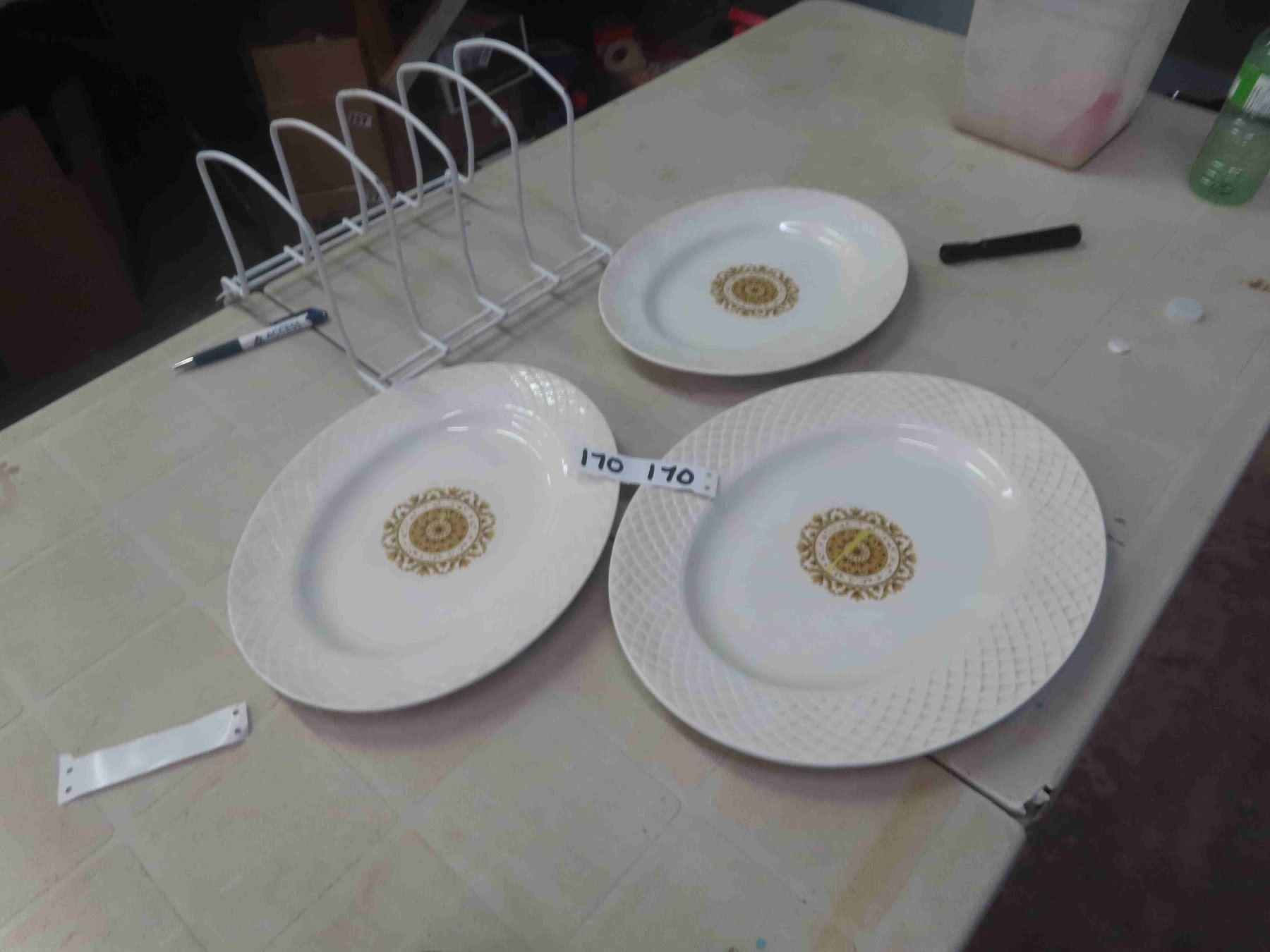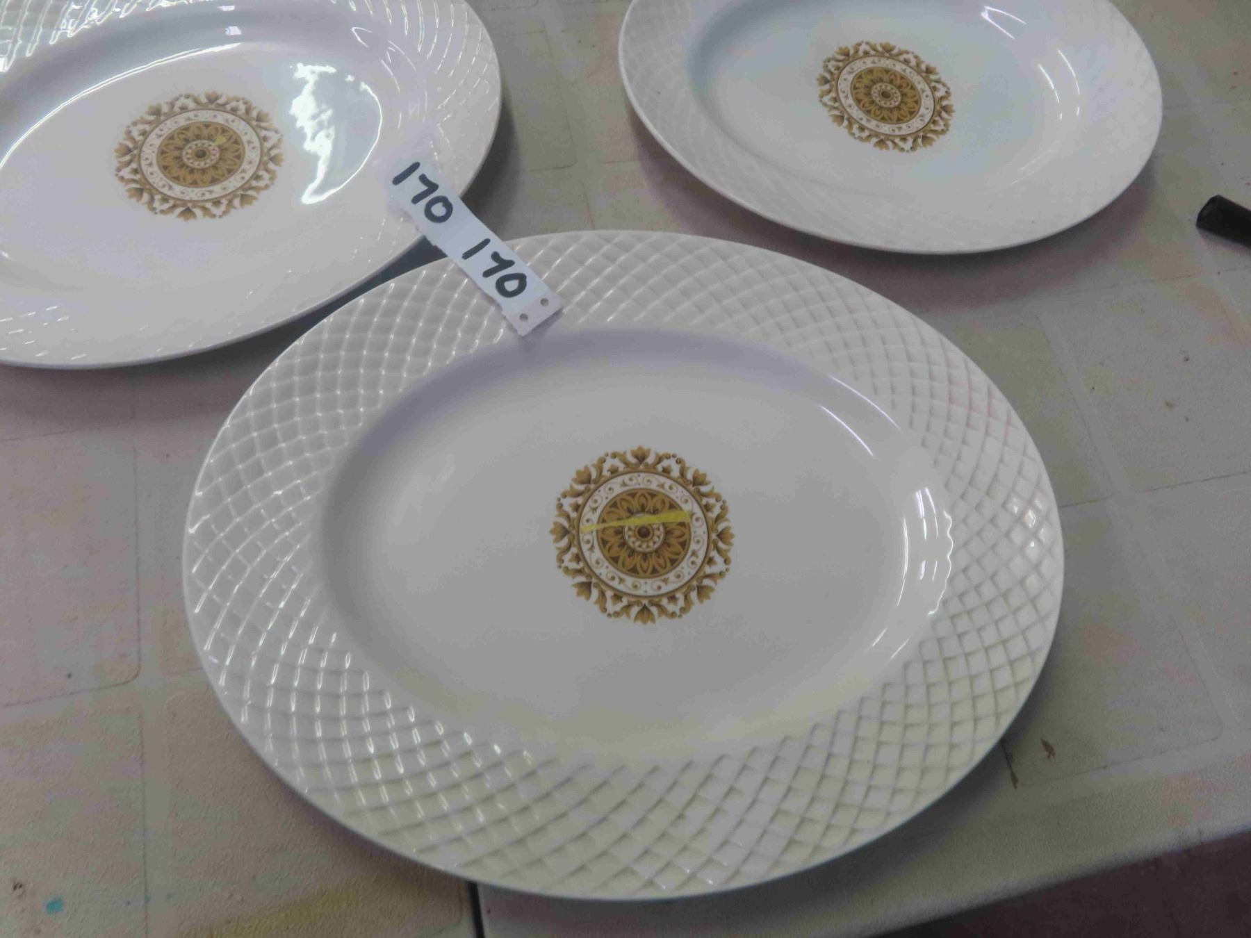 3 Gold Medallion Wedgewood Platters with Display Rack