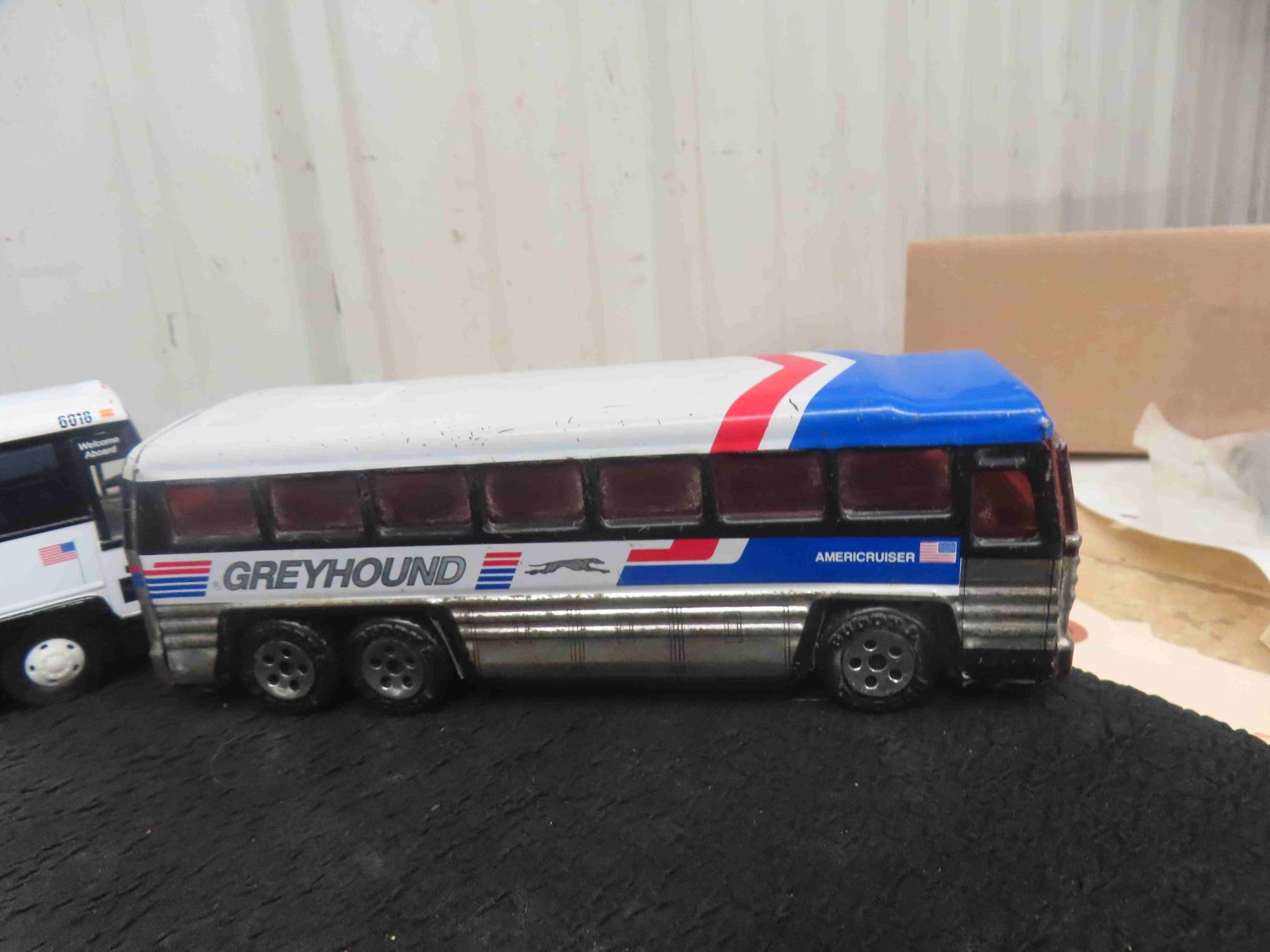 3 Greyhound Busses ; (2) Corgi + Buddy L - Biggest 2" x 2.5" x 10.5"