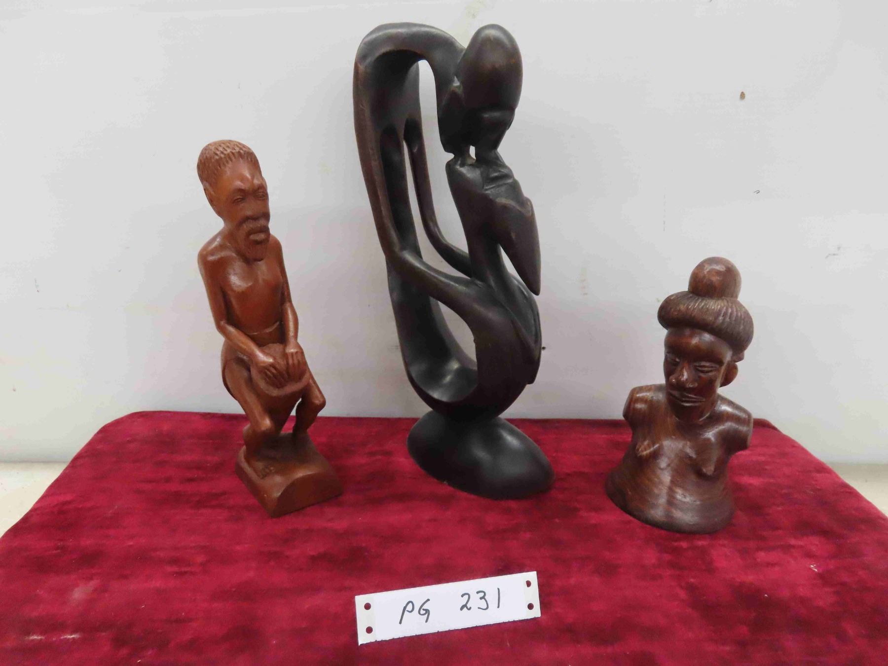 3 Hand Carved Wood Sculptures (1) from Kykwit Zaire , (1) from Angola