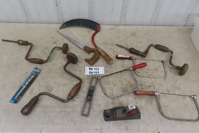 3 Hand Drills, Coping Saws, Planer, Level, Sythe