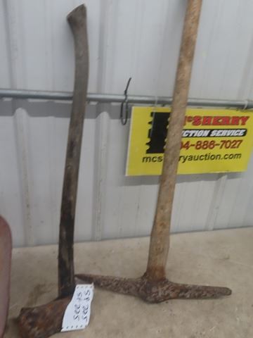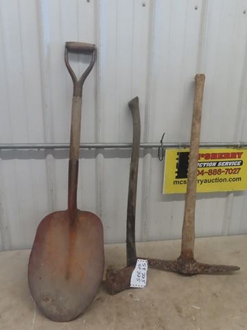 3 Hand Yard Tools; Shovel, Axe, Pick