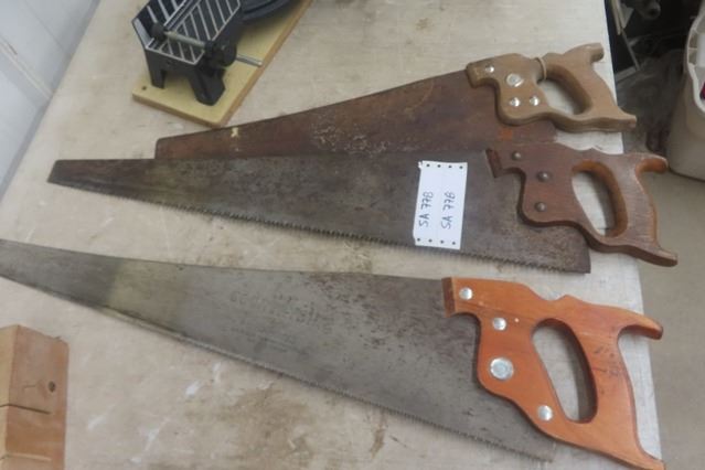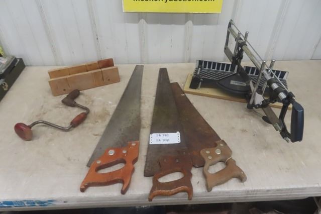 3 Handsaws, Heavy Duty Mastercraft Miter Saw, Bit Brace Drill, Miter Box