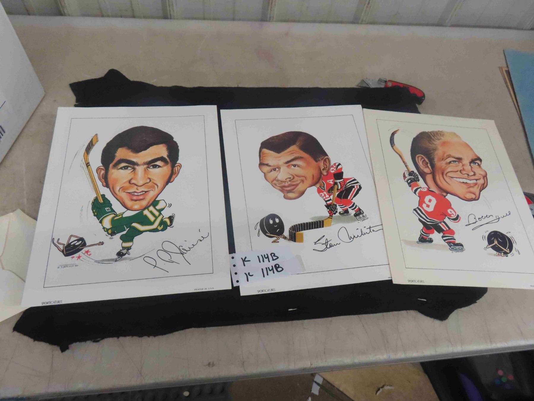 3 Hockey Sporticaturs, 1971 Signed Picture, Bobby Hull , Plus 11'' x 14''