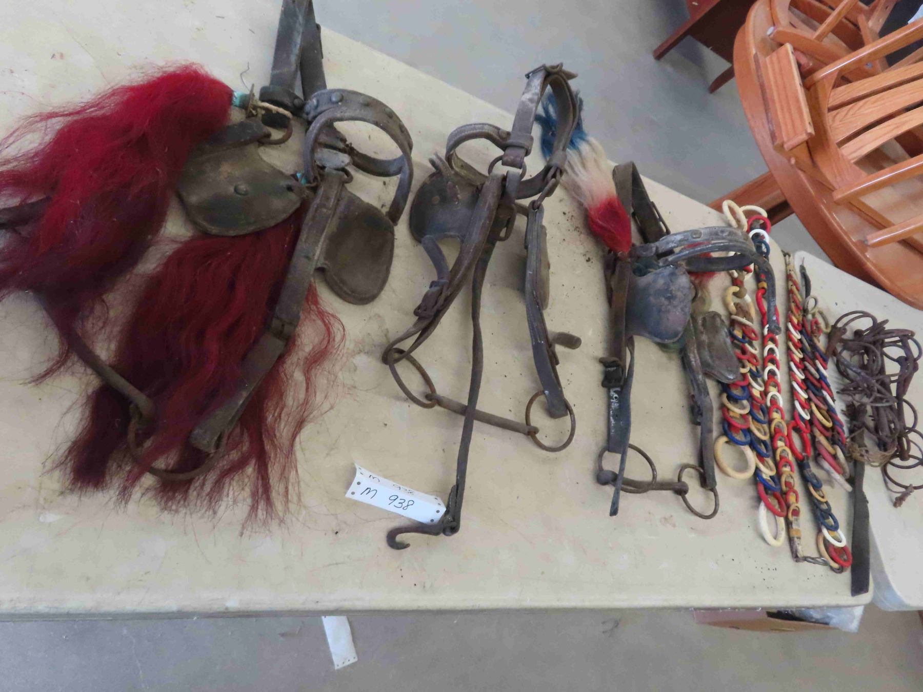3 Horse Bridles , 2 with Dyed Tail Hair, Spread Rings, Bits
