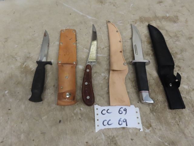 3 Hunting Knives with Holsters ; (2) 10" & (1) 9"