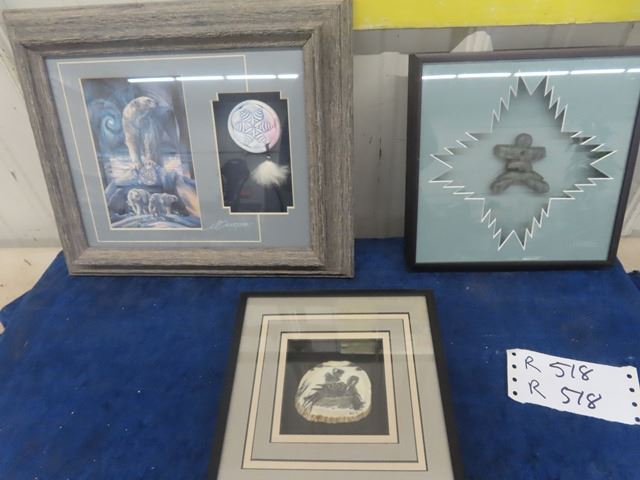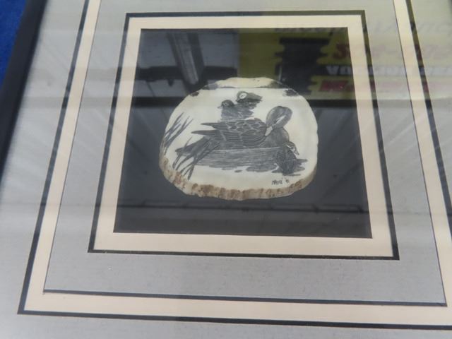 3 Inuit Art ; Duck on Caribou Horn, Stone Art Largest 12" x 13"