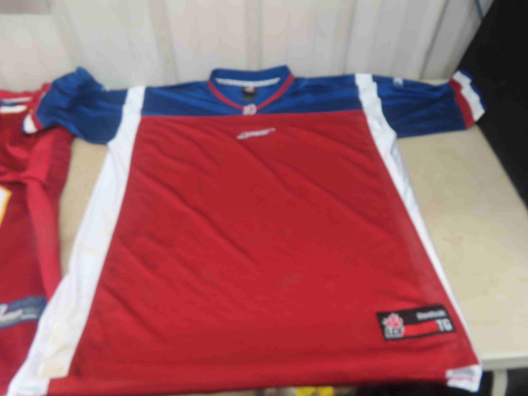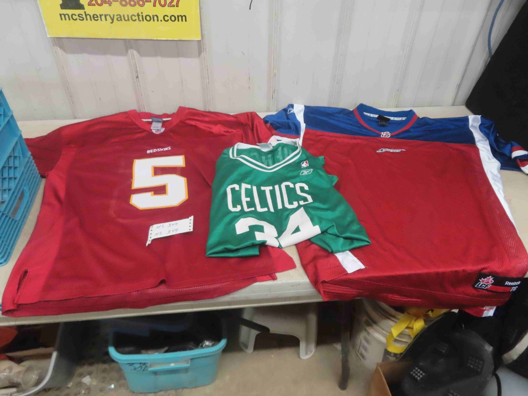 3 Jerseys ; NBA Celtics Sz 2XL, CFL Alouettes Sz XL, NFL Red Skins Sz 50