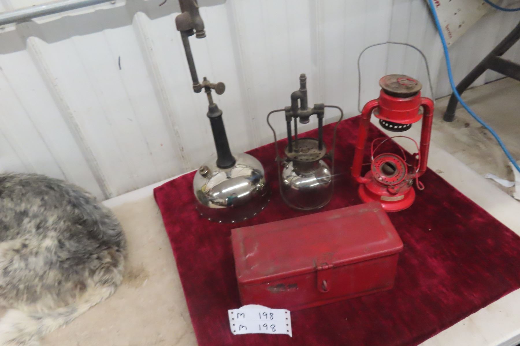 3 Lamp Lanterns ( Not Complete) + Fordson Metal Tool Box