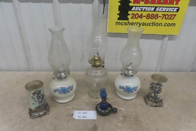 3 Larger Oil Lamps ; 1 Smaller, 2 Candles