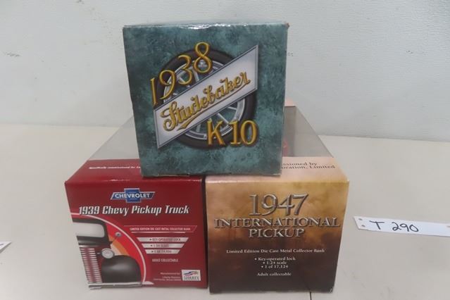 3 Liberty Classics Canadian Tire Truck Banks Scale 1:24 - 1938 Studebaker, 1939 Chevrolet, 1947 International Harvester - All in Boxes