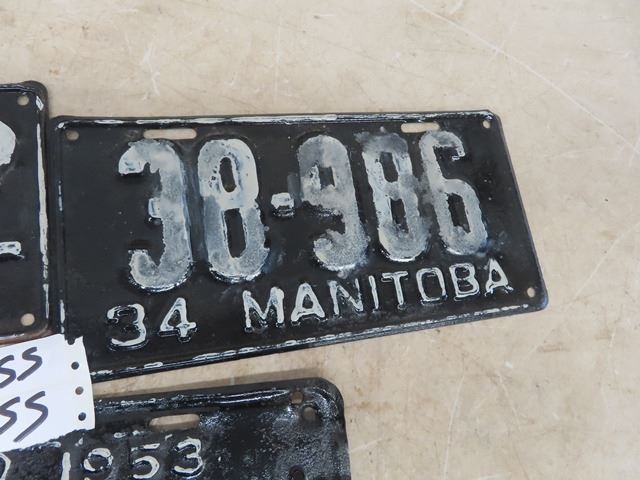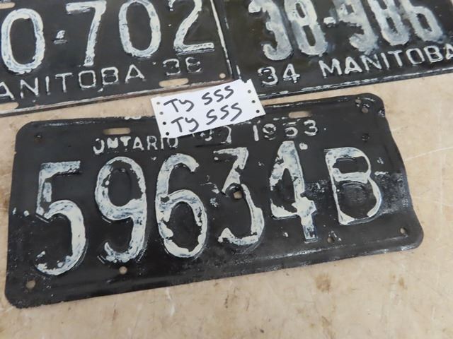 3 License Plates ; 1) MB 34, 1) MB 38, 1) ONT 53