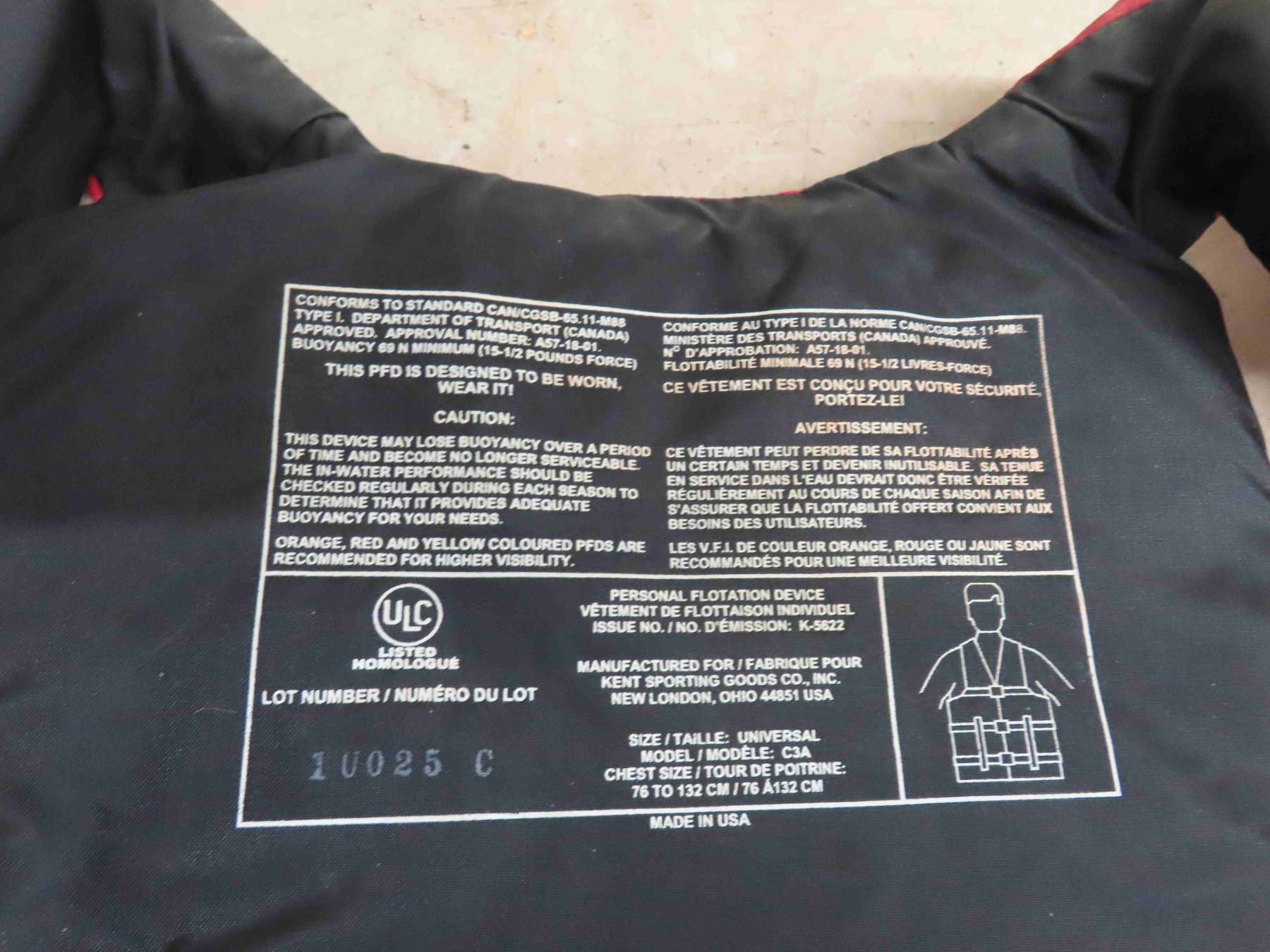 3 Life Jackets : Chest Size 76-132cm