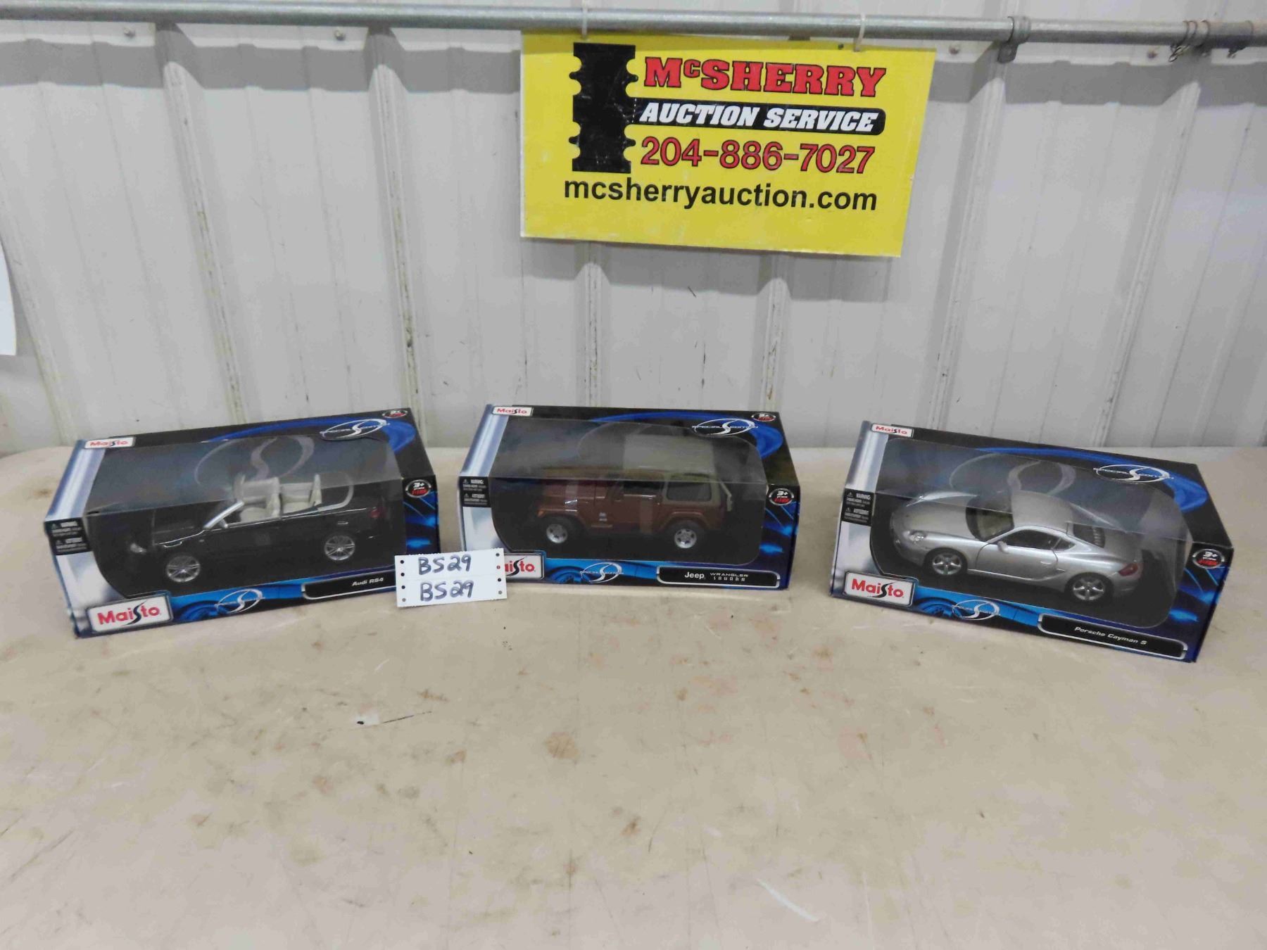 3 Maisto Special Edition 1:18 Scale Die Cast Vehicles ; Boxed Audi RS4, Jeep Wrangler, Porsche Cayman S