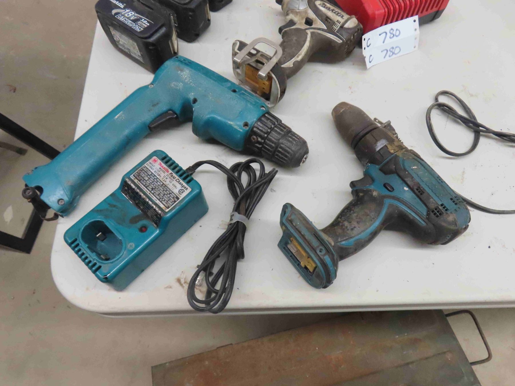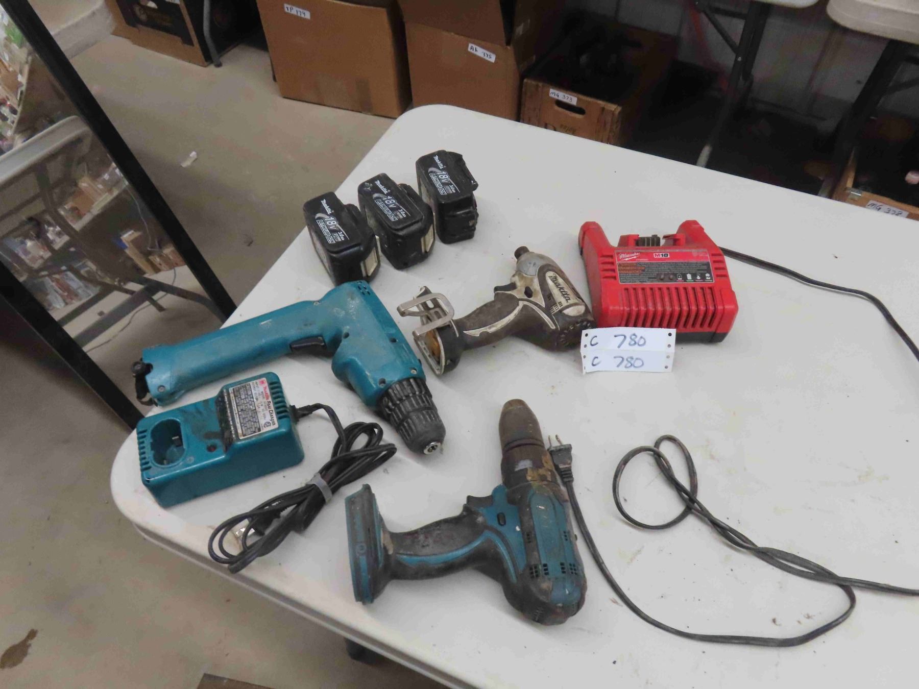 3 Makita Drills , 1 Makita Charger , (3) 18V Makita Batteries, Milwaukee 18V Charger