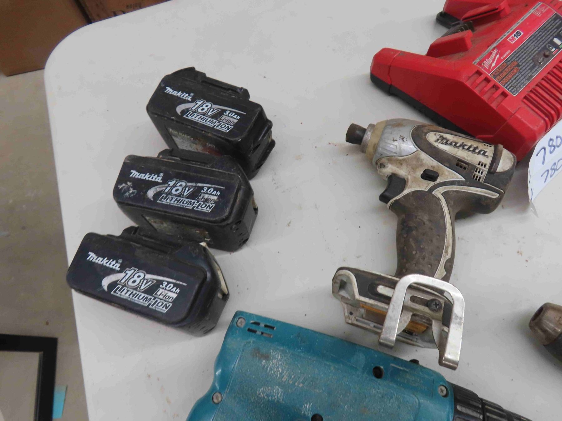 3 Makita Drills , 1 Makita Charger , (3) 18V Makita Batteries, Milwaukee 18V