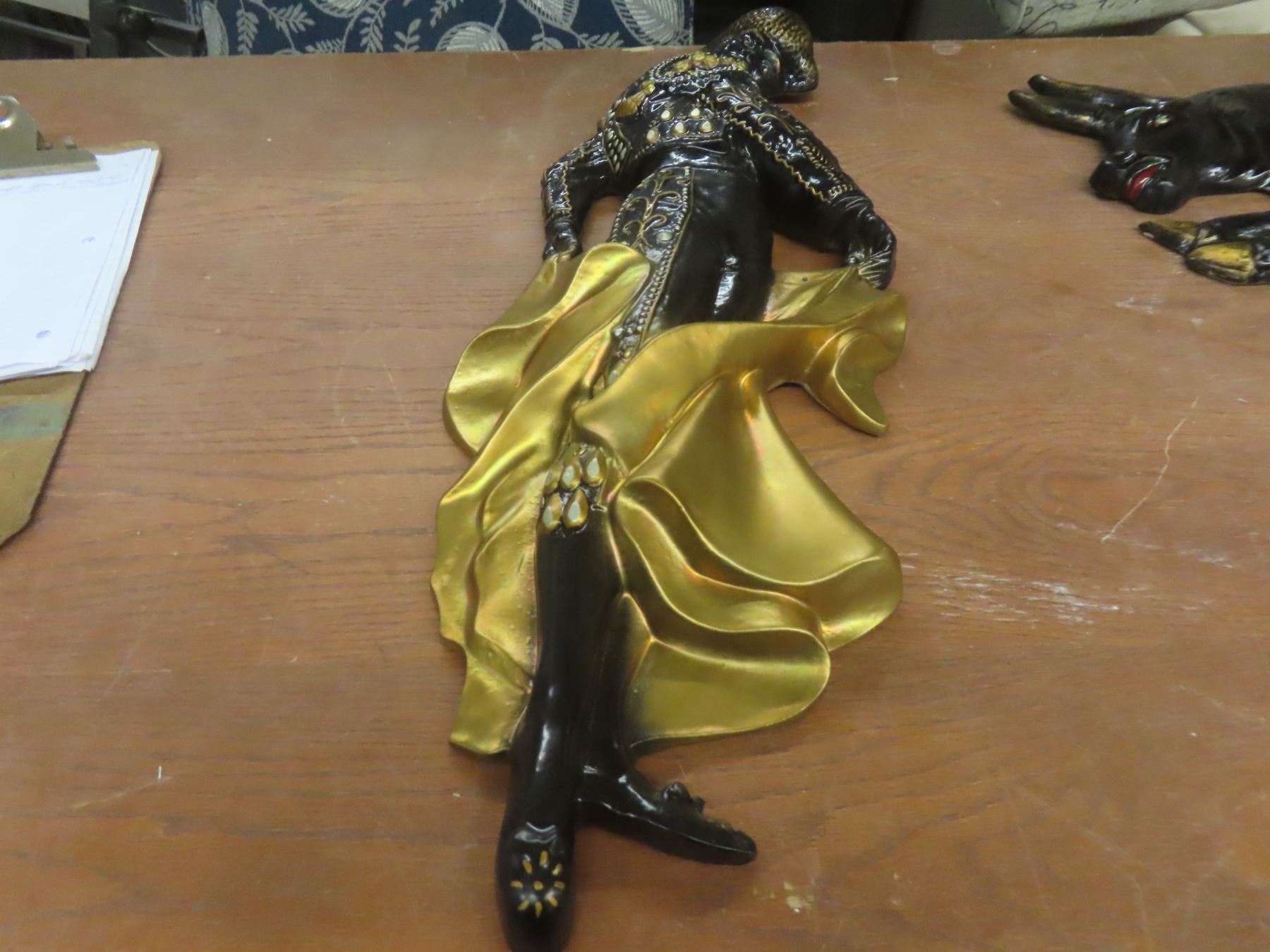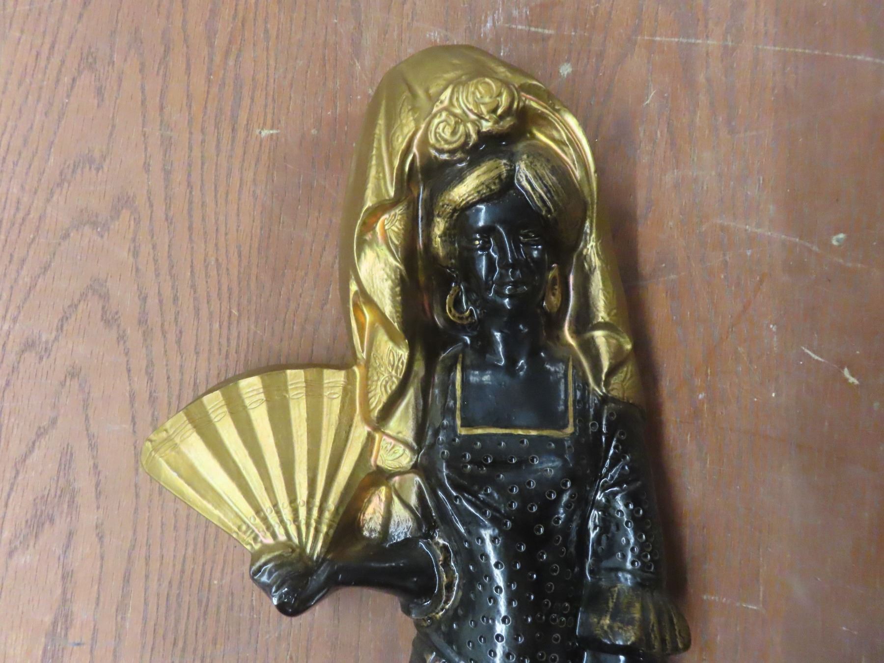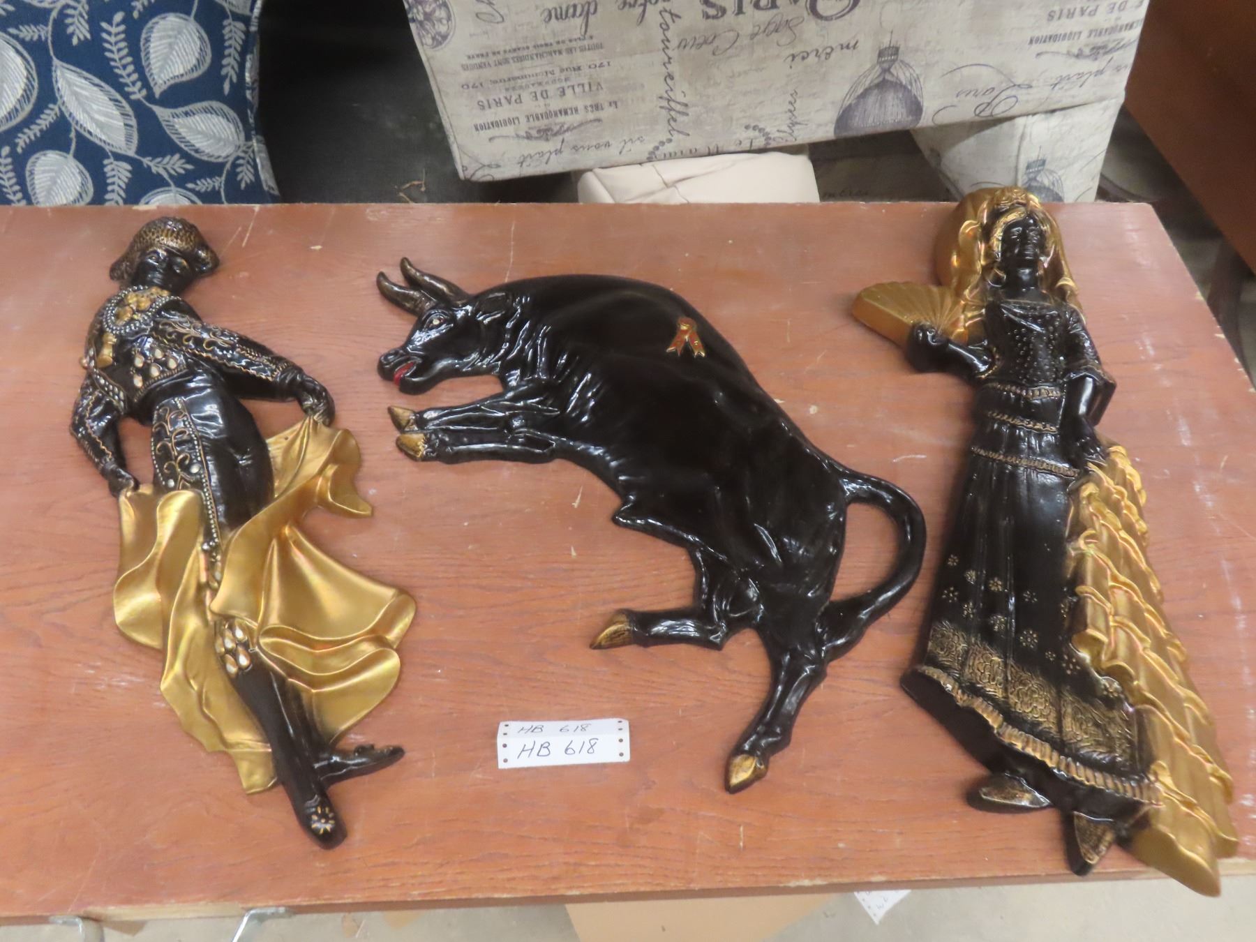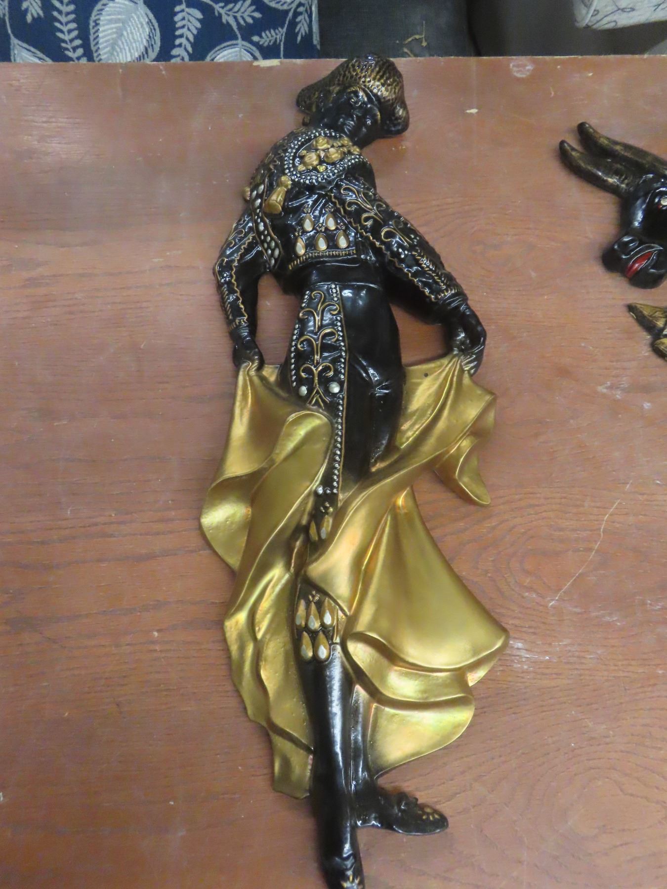 3 Markscraft Spanish-Theme Wall Plaques ā Matador, Bull, And Senorita; 1950sā60s; Tallest 31".