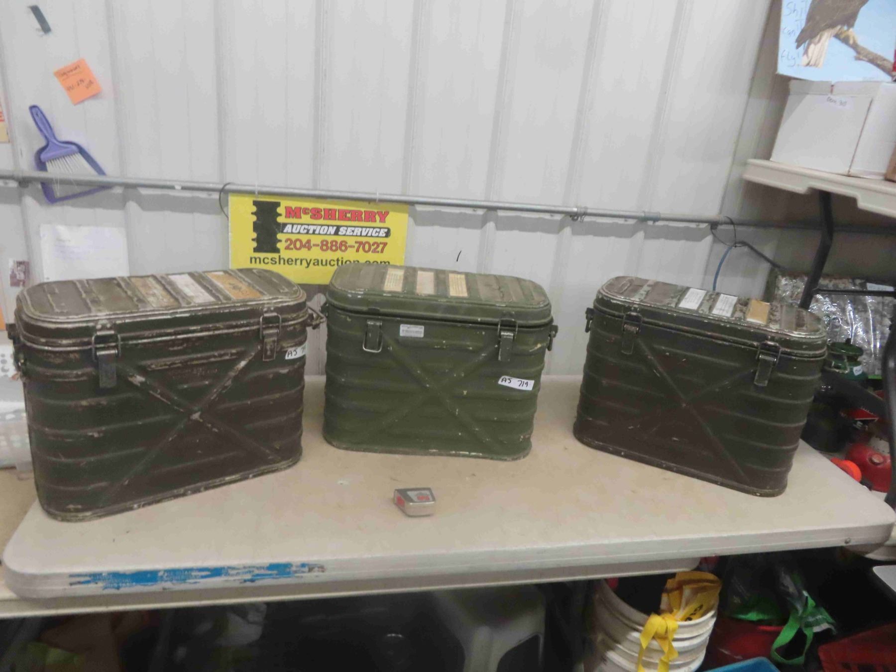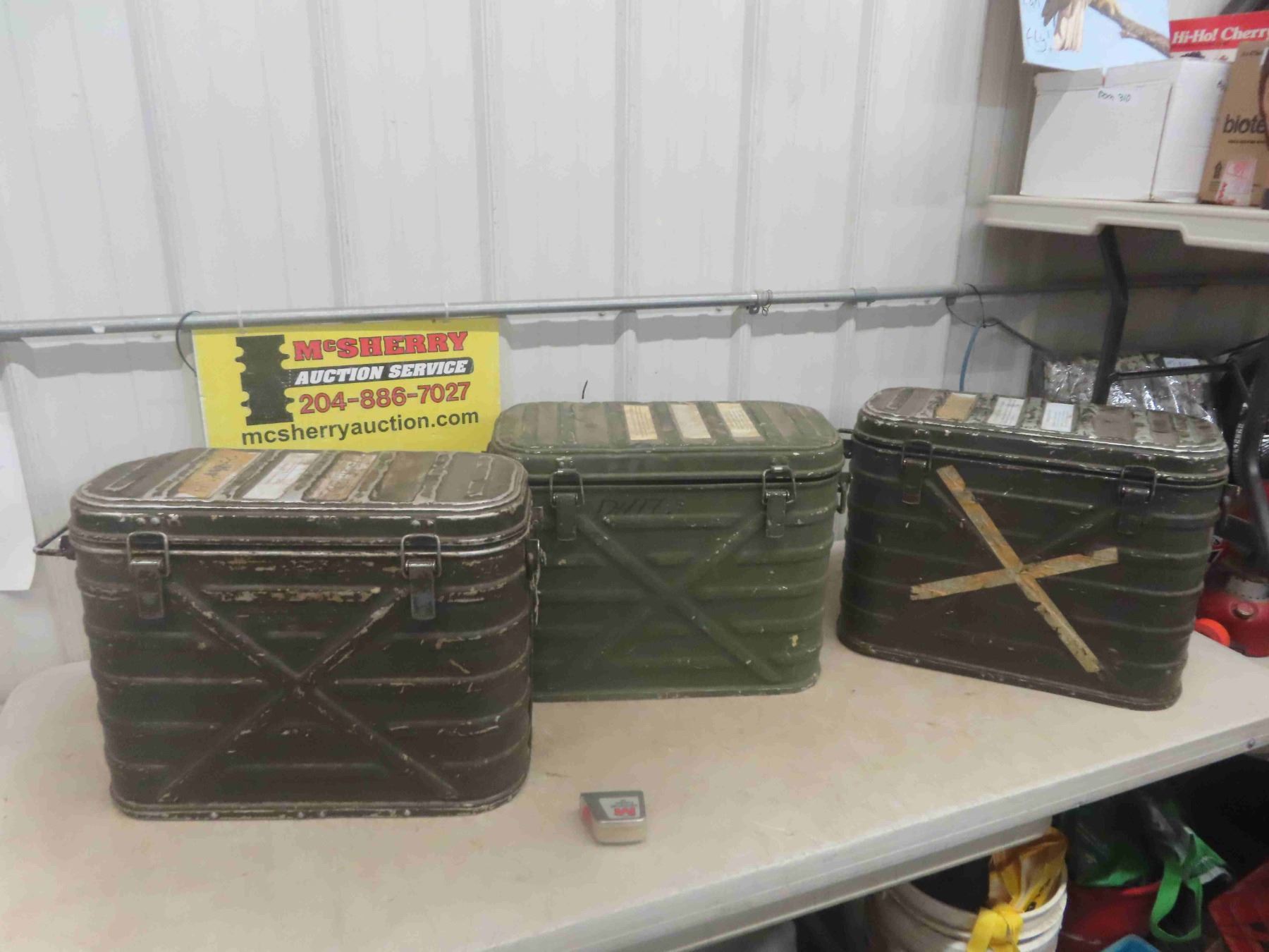 3 Metal Food Canisters - Military 9" x 15" x 20"