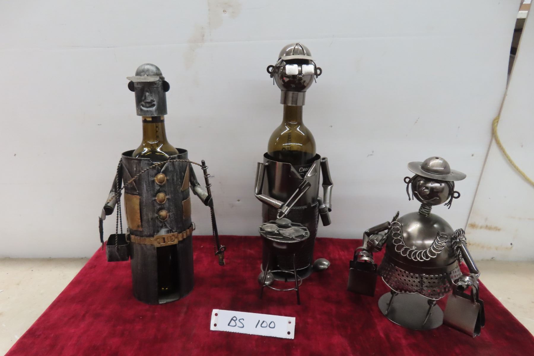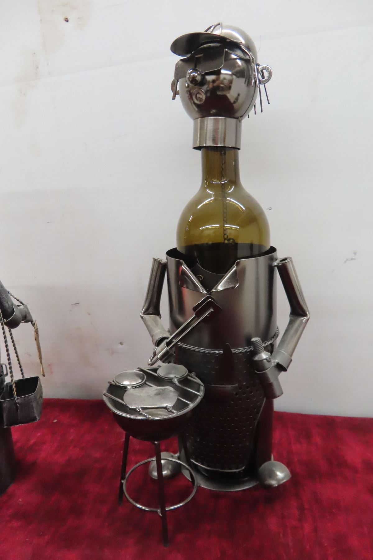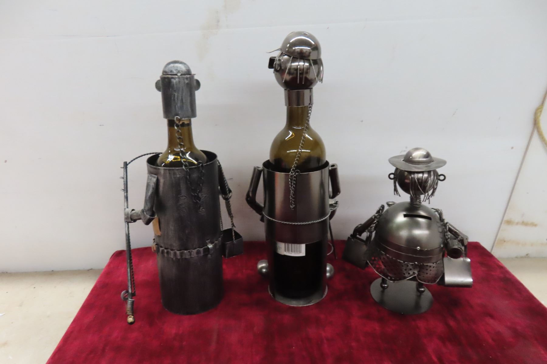 3 Metal Sculptures: 2 Wine Holders and Bank Tallest 15''