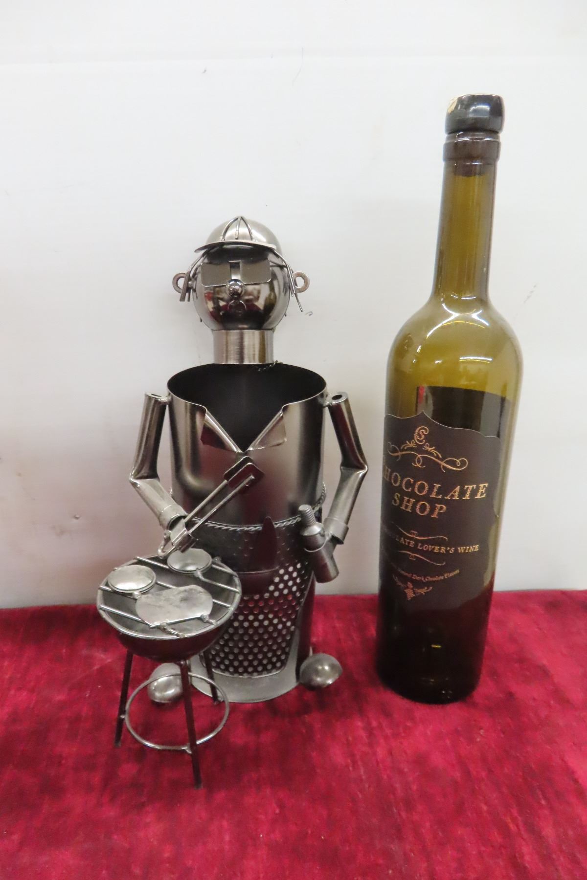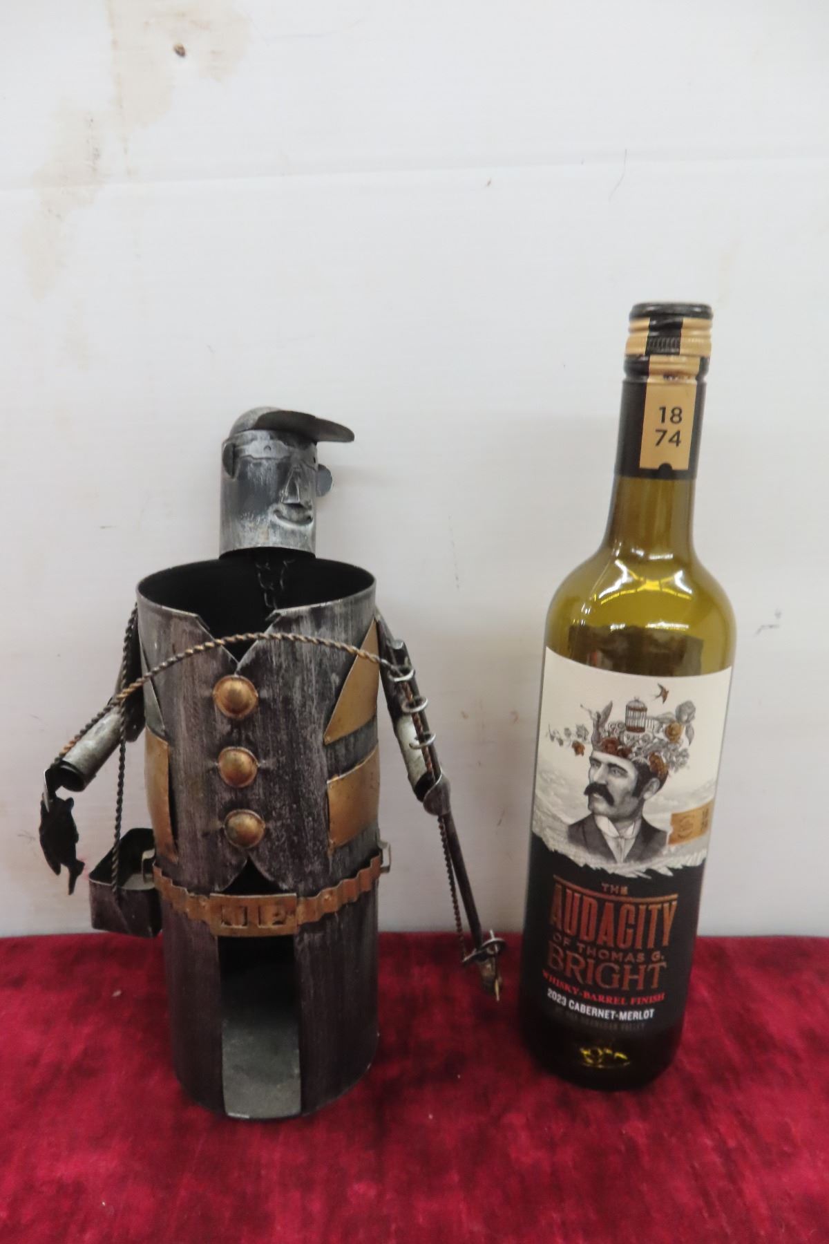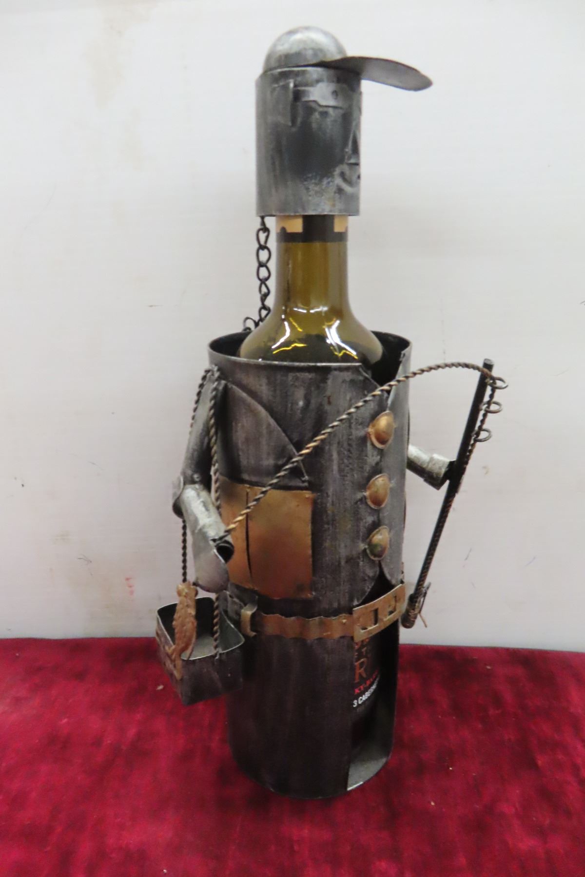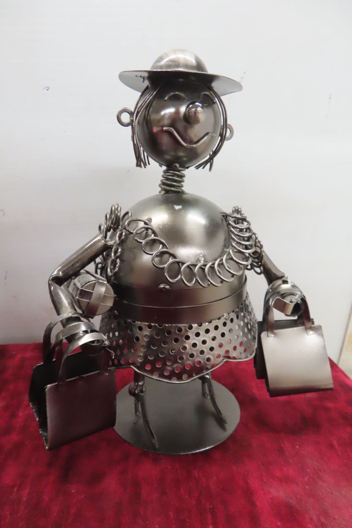 3 Metal Sculptures: 2 Wine Holders and Bank Tallest 15''