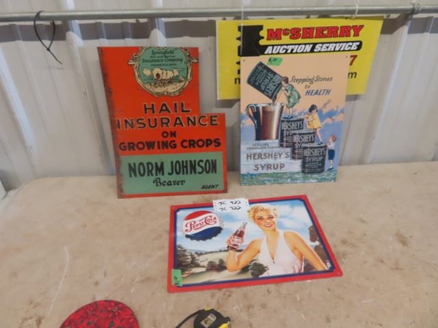 3 Metal Signs; 1) Vintage Insurance - but CUT, 1) Modern Hersey's 12" x 17" , 1) Modern Pepsi 12" x 17"