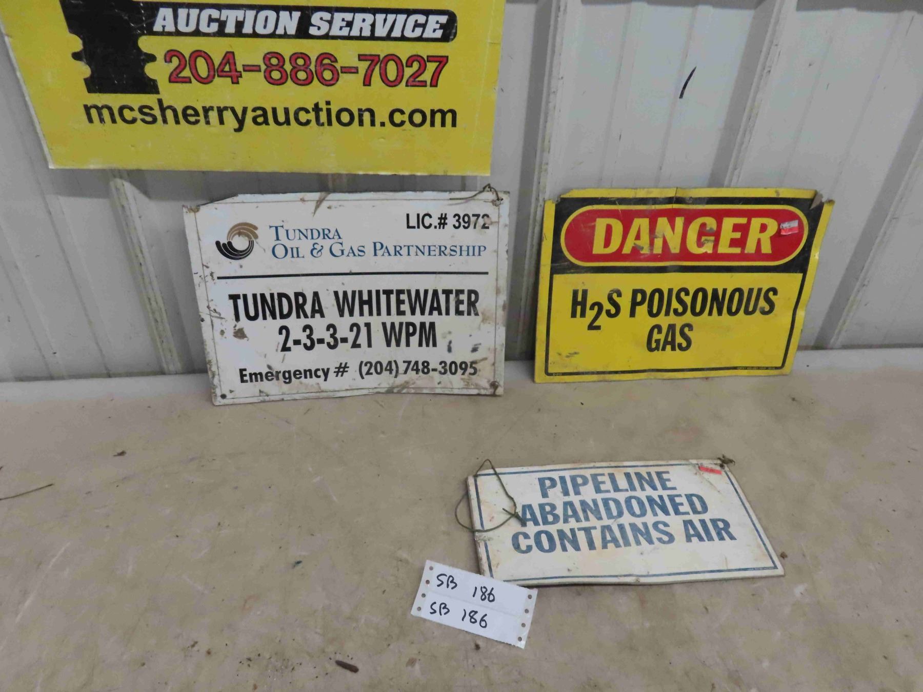 3 Metal Signs : Danger Poisonous Gas 10'' x 14'' , Abandoned Pipeline 12'' x 6'' , Tundra Oil and Gas 10'' x 4''
