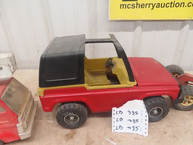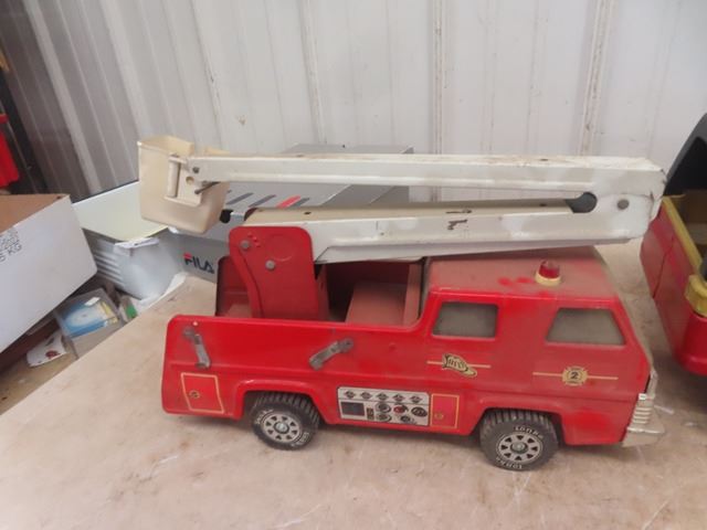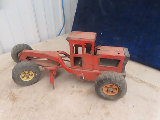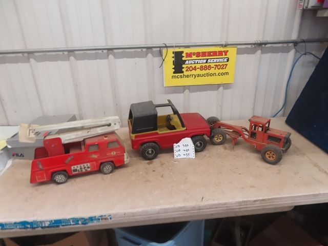 3 Metal Tonka; Grader, Jeep, Fire Ladder Truck