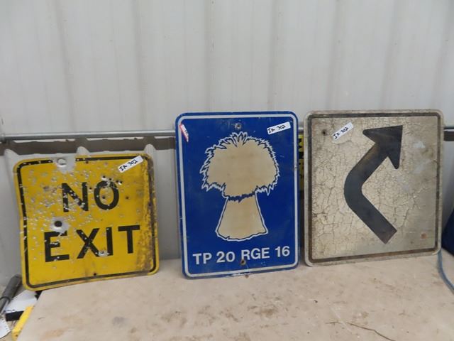 3 Metal Traffic SIgns: No Exit 17.5"x 17.5" , Sask Sign 17.5" x 23.5" , Curve Sign 24" x 24"
