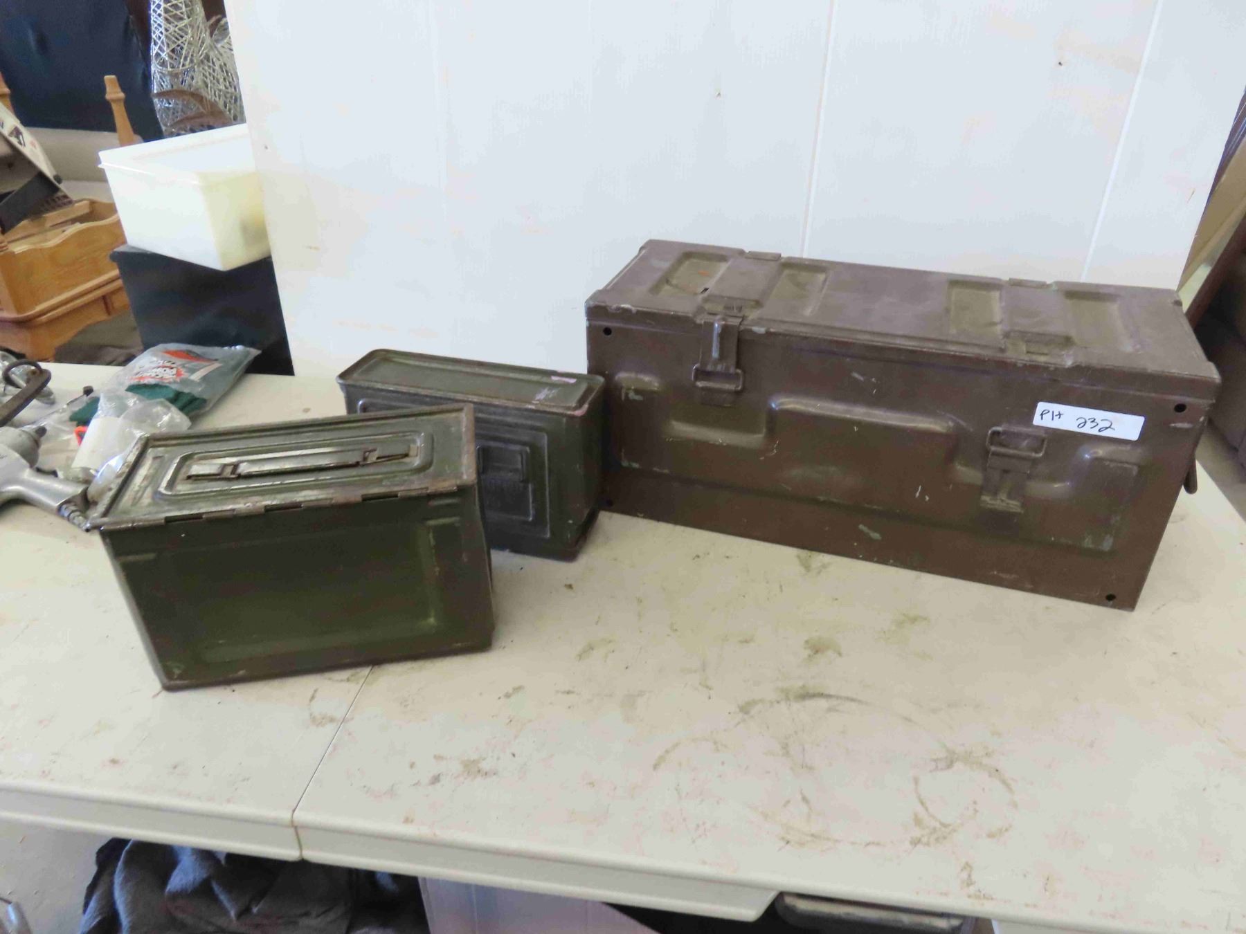 3 Military Metal Ammo Cases, Biggest 10'' x 23'' x 9''