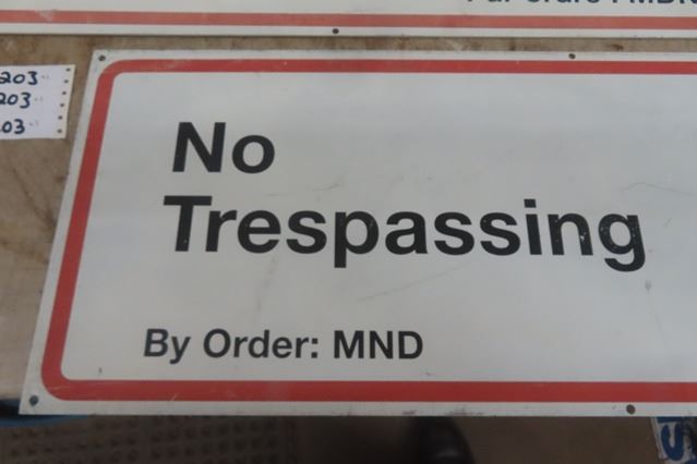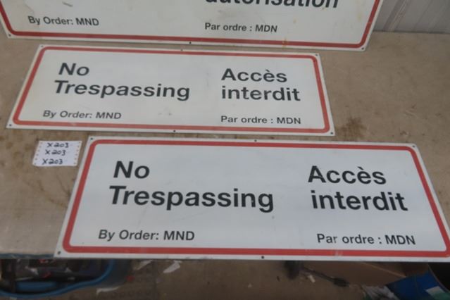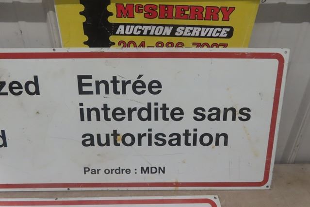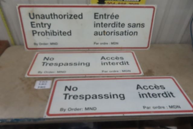 3 Military Metal Signs ; (2)  " No Trespassing' 12.5" x 35" & 'Unauthorized Entry Prohibited' 15.5" x 45.5"
