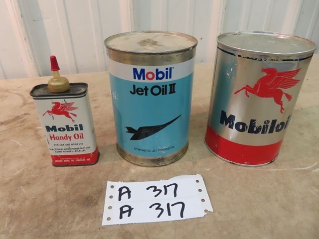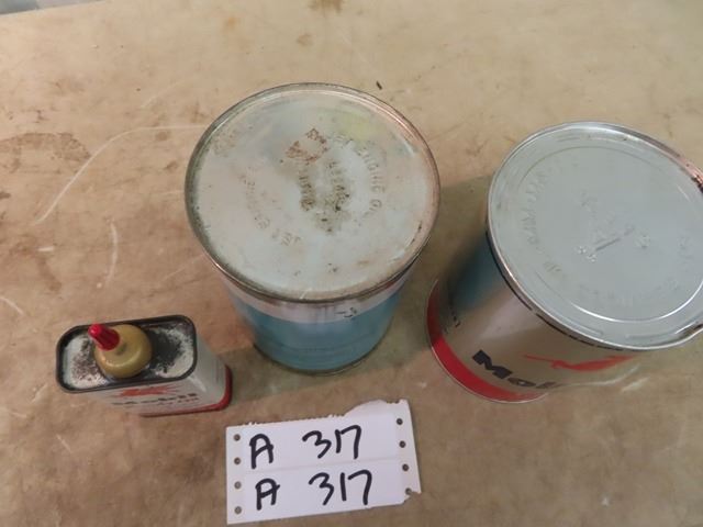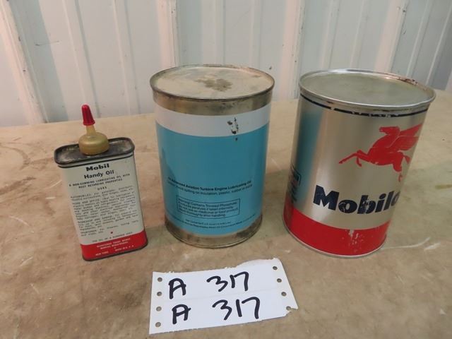 3 Mobiloil Cans 1) Handy Oil - 4 Fluid Oz, 1) Jet OIl #2 - Quart, & 1) Oil Quart