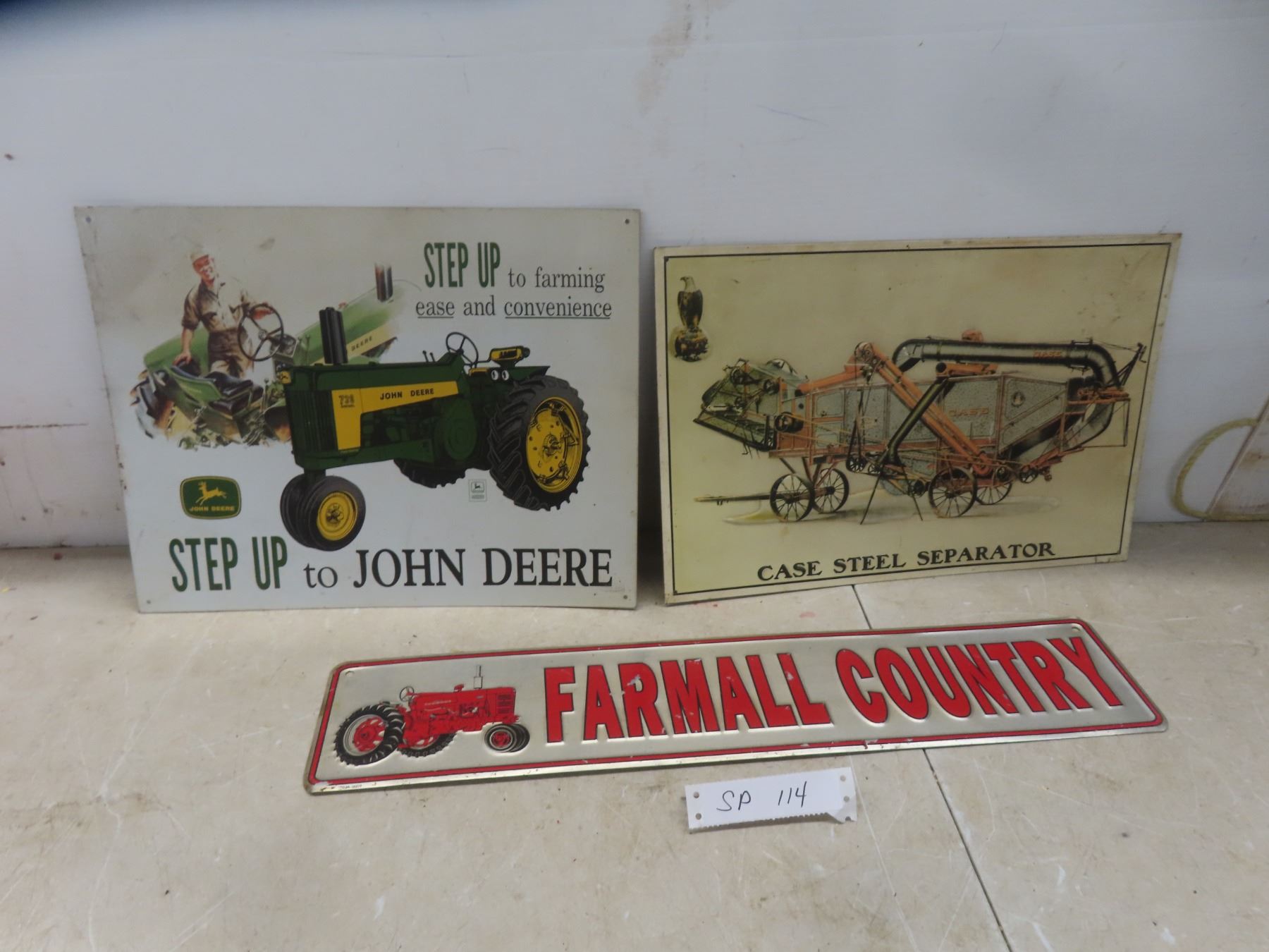 3 Modern Metal Tractor Signs - John Deere, Farmall + A Case Seperator Largest 13"x 16"