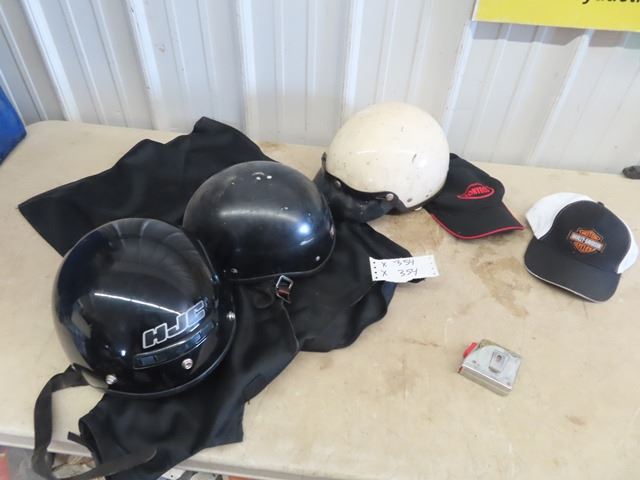 3 Motorcycle Helmets, Harley Hat & Carry On