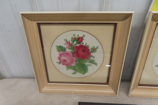 3 Needlepoint Floral Pictures- Largest 15.5"×17.5"