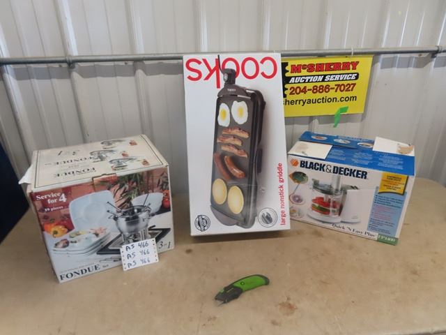 3 New Kitchen Appliances - 3 in 1 Fondue Set, 1C Penny Large Non-Stick Griddle, & B&D Food Processor
