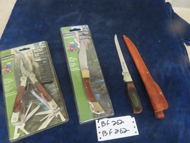 3 New Knives: Browning Filet Knife with Holster, Caroline 9" Folding Knife with Holster, Caroline Knife/ Multi Tool