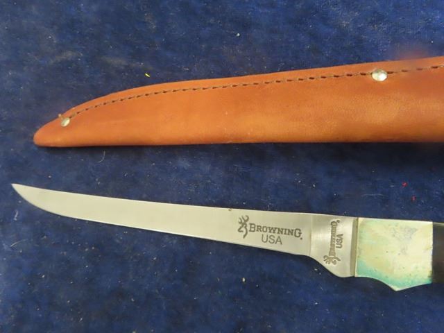 3 New Knives: Browning Filet Knife with Holster, Caroline 9" Folding Knife with Holster, Caroline Kn