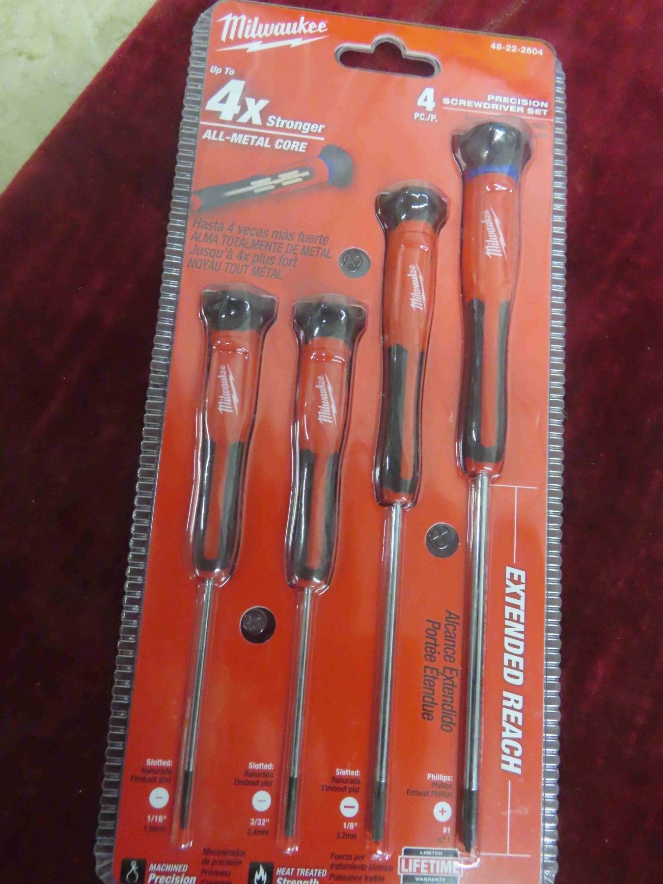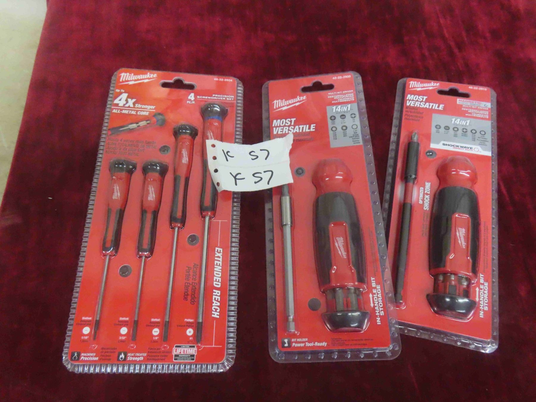3 New Milwaukee Screwdrivers in Packaging : 4pce Precision Screwdriver Set, (2) 14 in 1 Multi Bit.