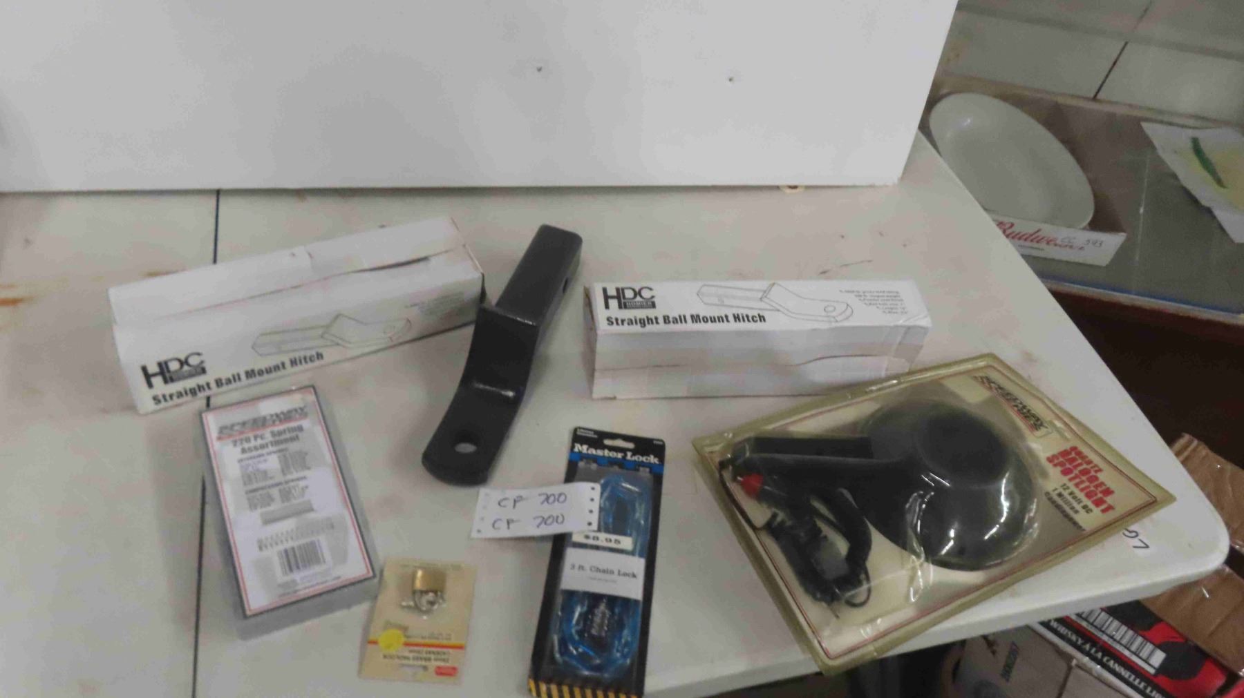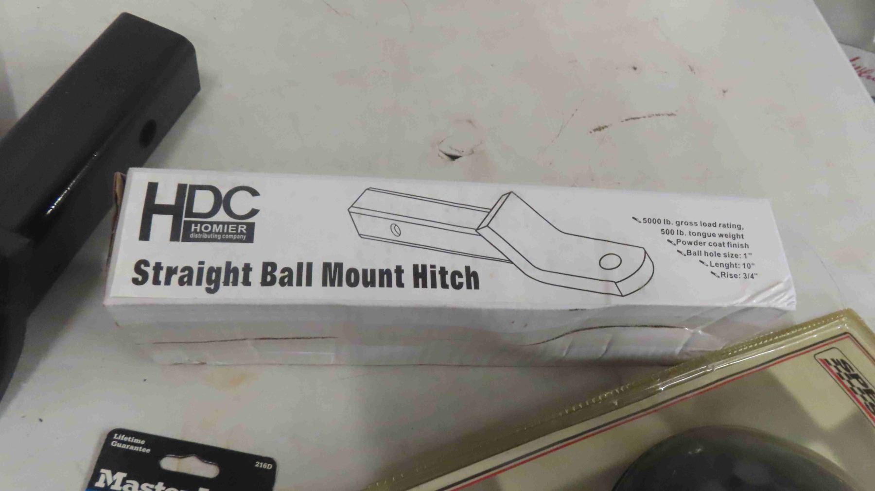 3 New Straight Ball Mount Hitches, New Spotlight, Locks, Spring Assortment, Nail Puller
