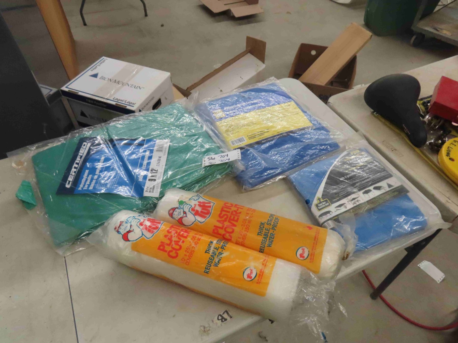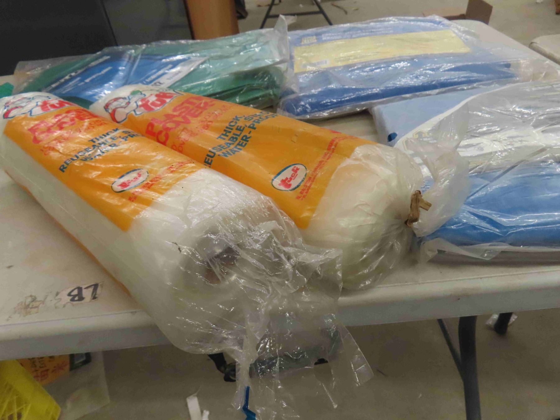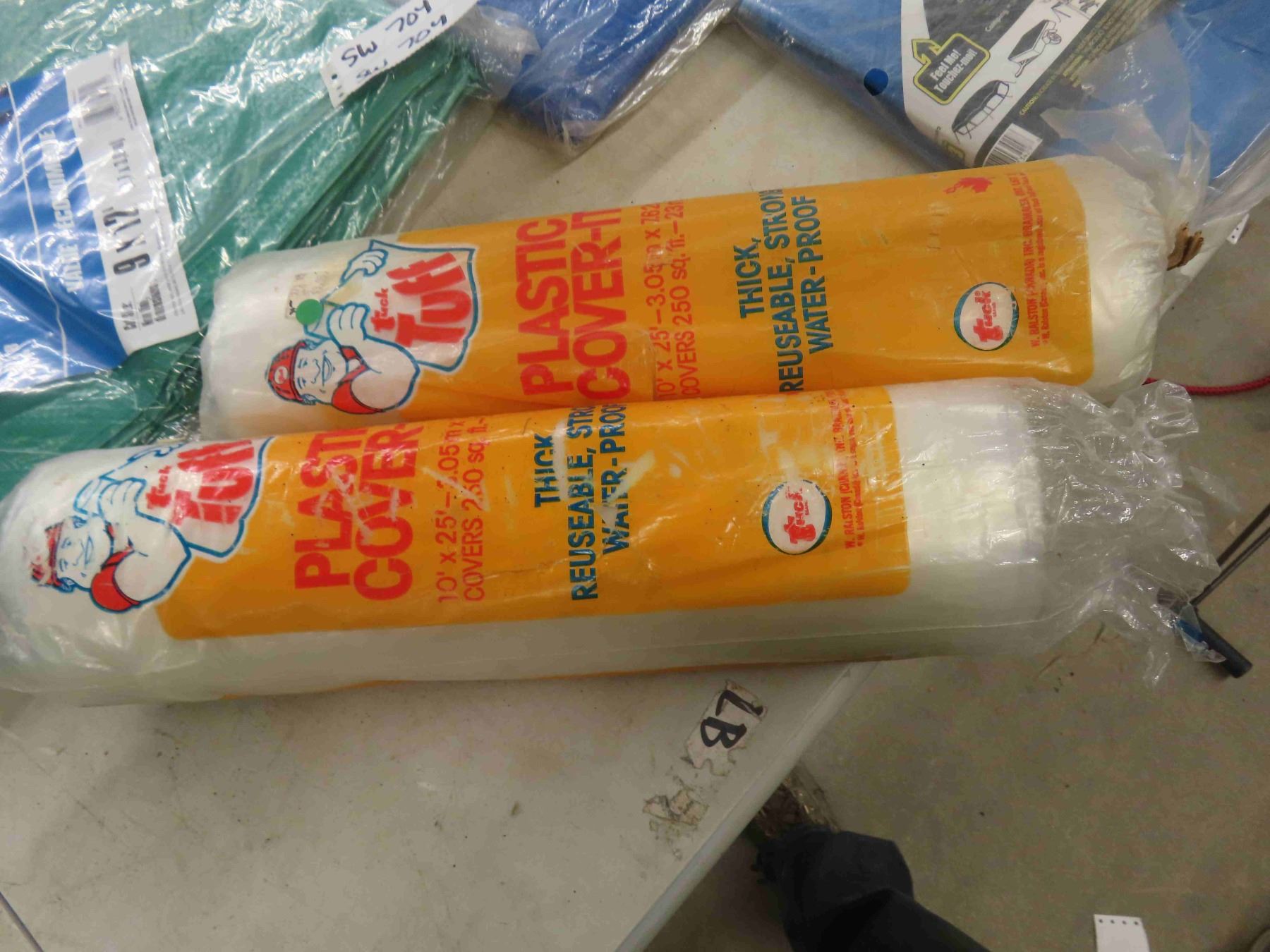 3 New Tarps ; 9'x 12' + 8' x 10' + 6'x8' & 2 Rolls of Plastic Cover 10' x 25' Each