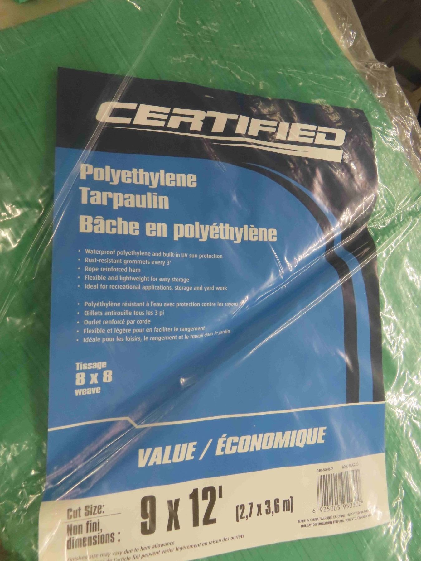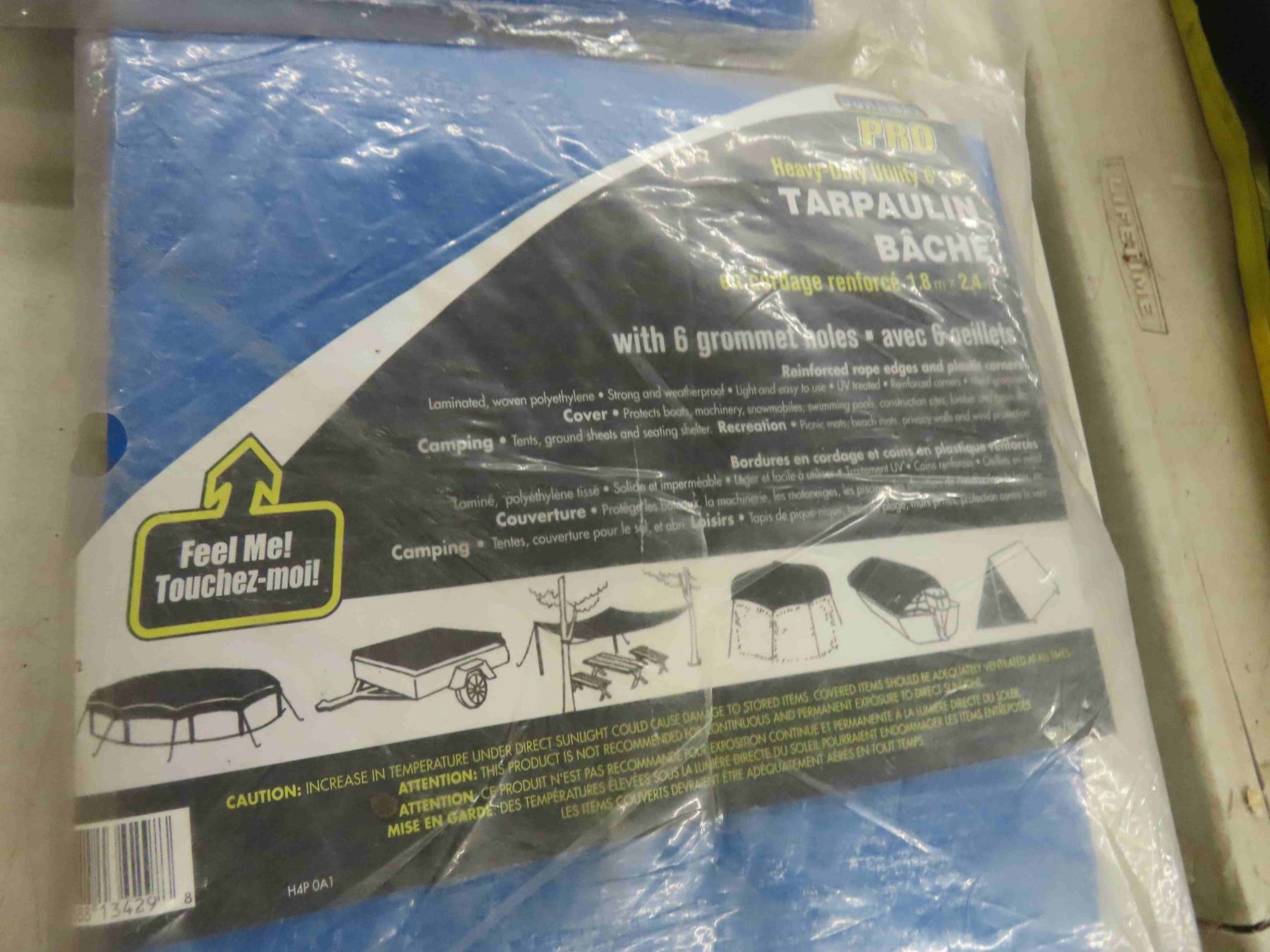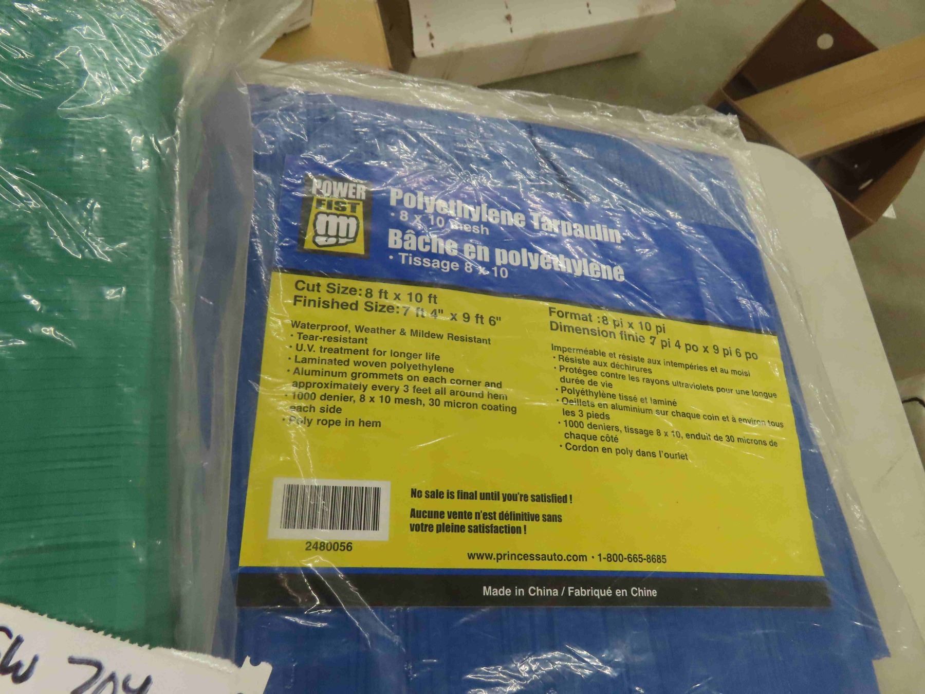 3 New Tarps ; 9'x 12' + 8' x 10' + 6'x8' & 2 Rolls of Plastic Cover 10' x 25' Each