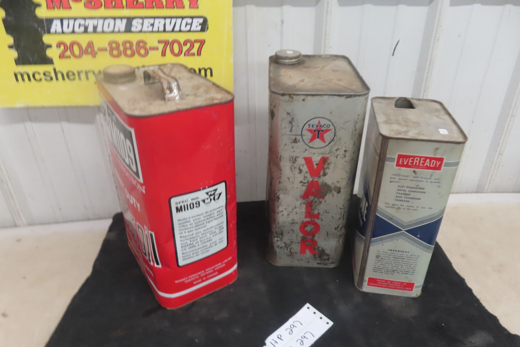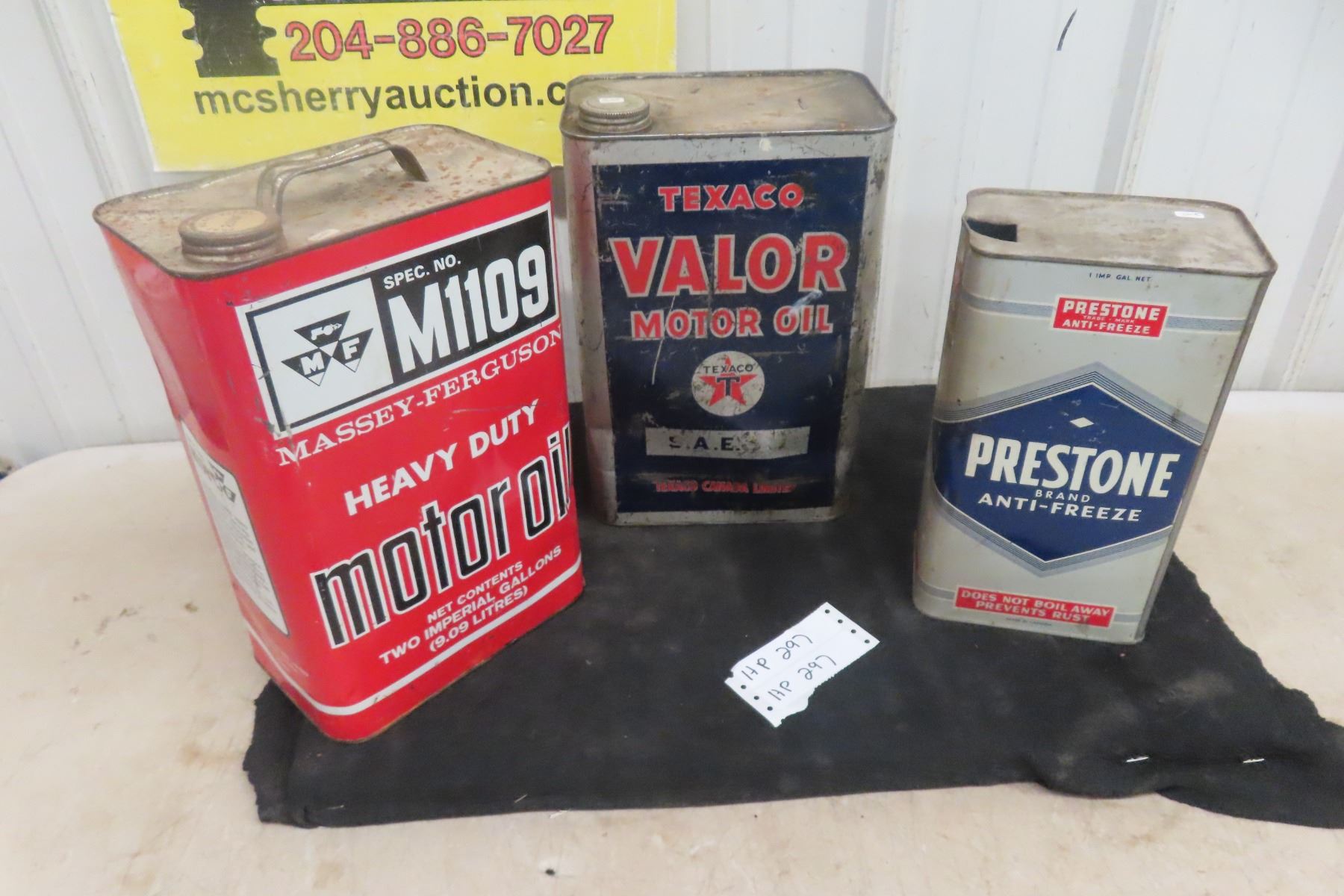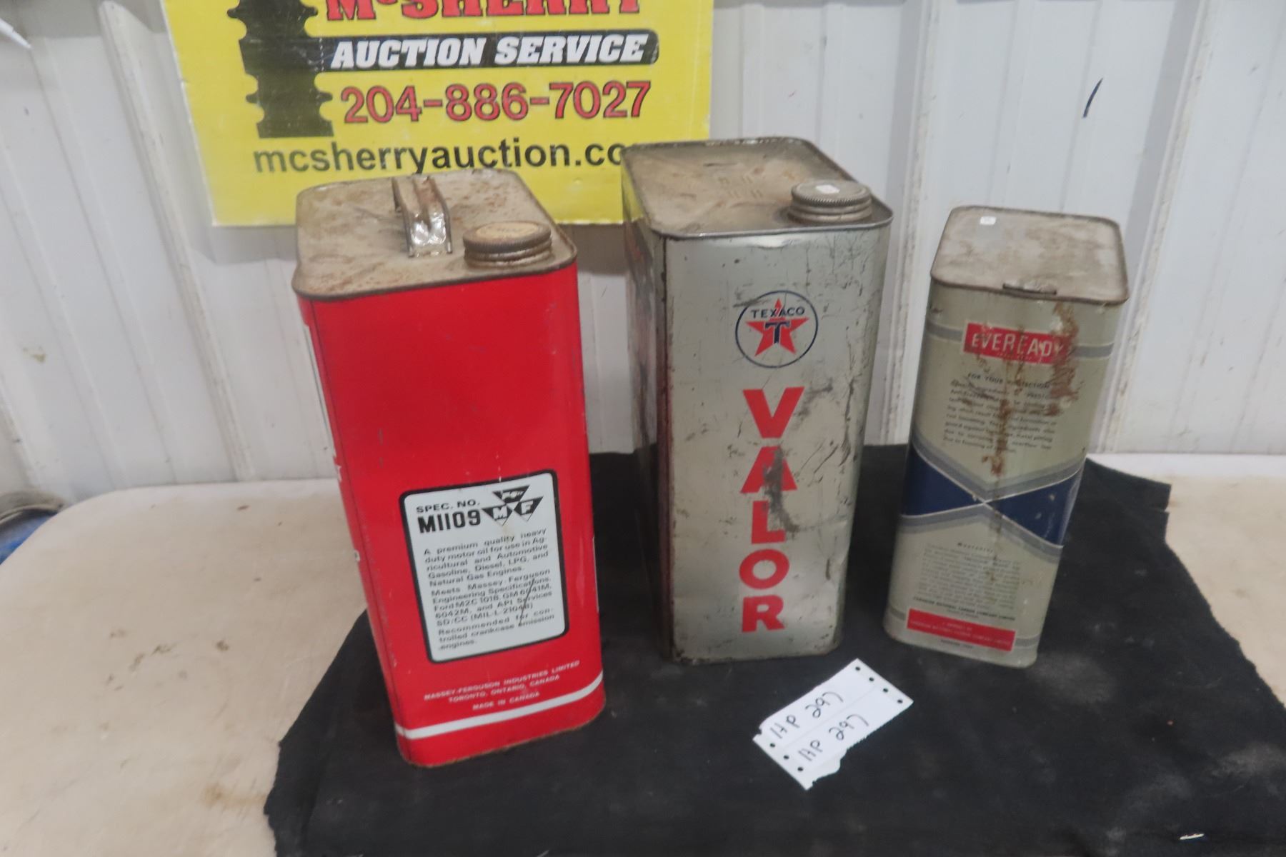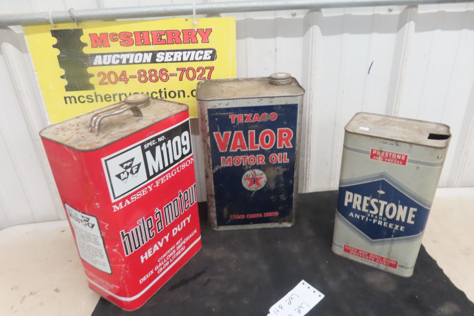 (3) Oil Cans : 1gal, 2gal, Texaco, Prestone, MF.