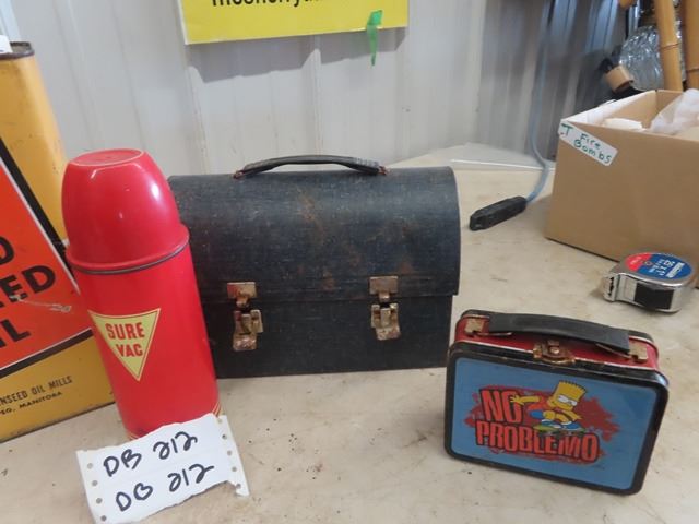 3 Oil Cans & Metal Lunch Kit & Thermos