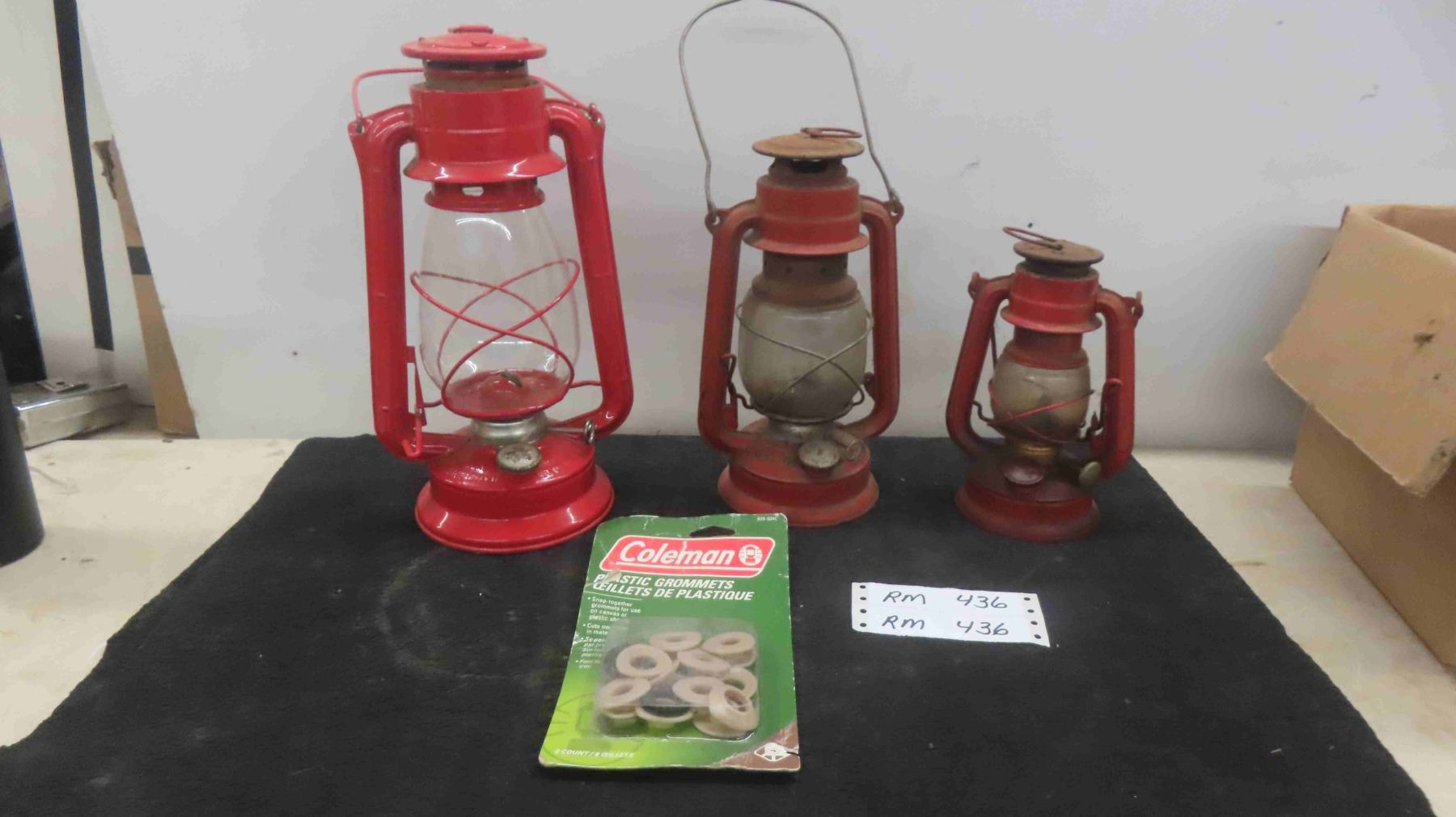 3 Oil Lanterns , New Old Stock Plastic Grommets